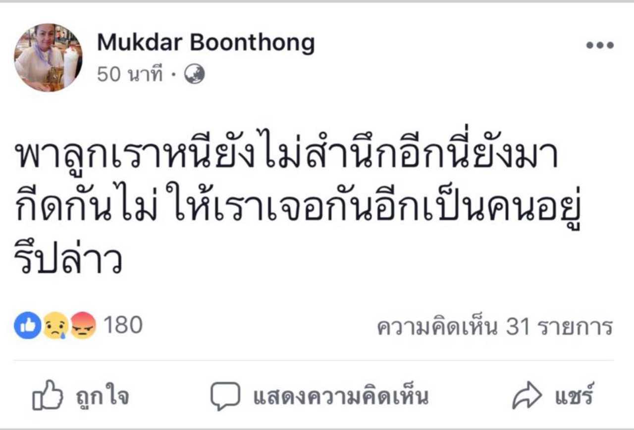 คุณแม่มุก มุกดา แฉซ้ำแรงชัดจัดหนักไปด้วย "พาลูกเราหนียังไม่สำนึกอีก นี่ยังมากีดกันไม่ให้เราเจอกันอีก เป็นคนอยู่รึปล่าว.