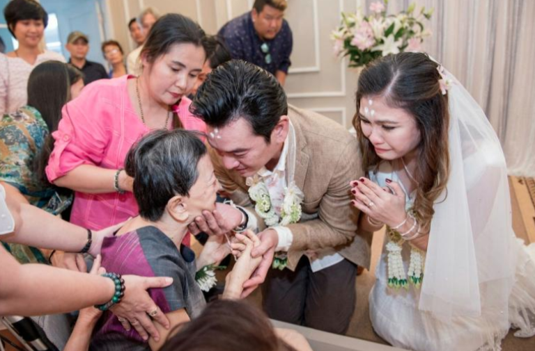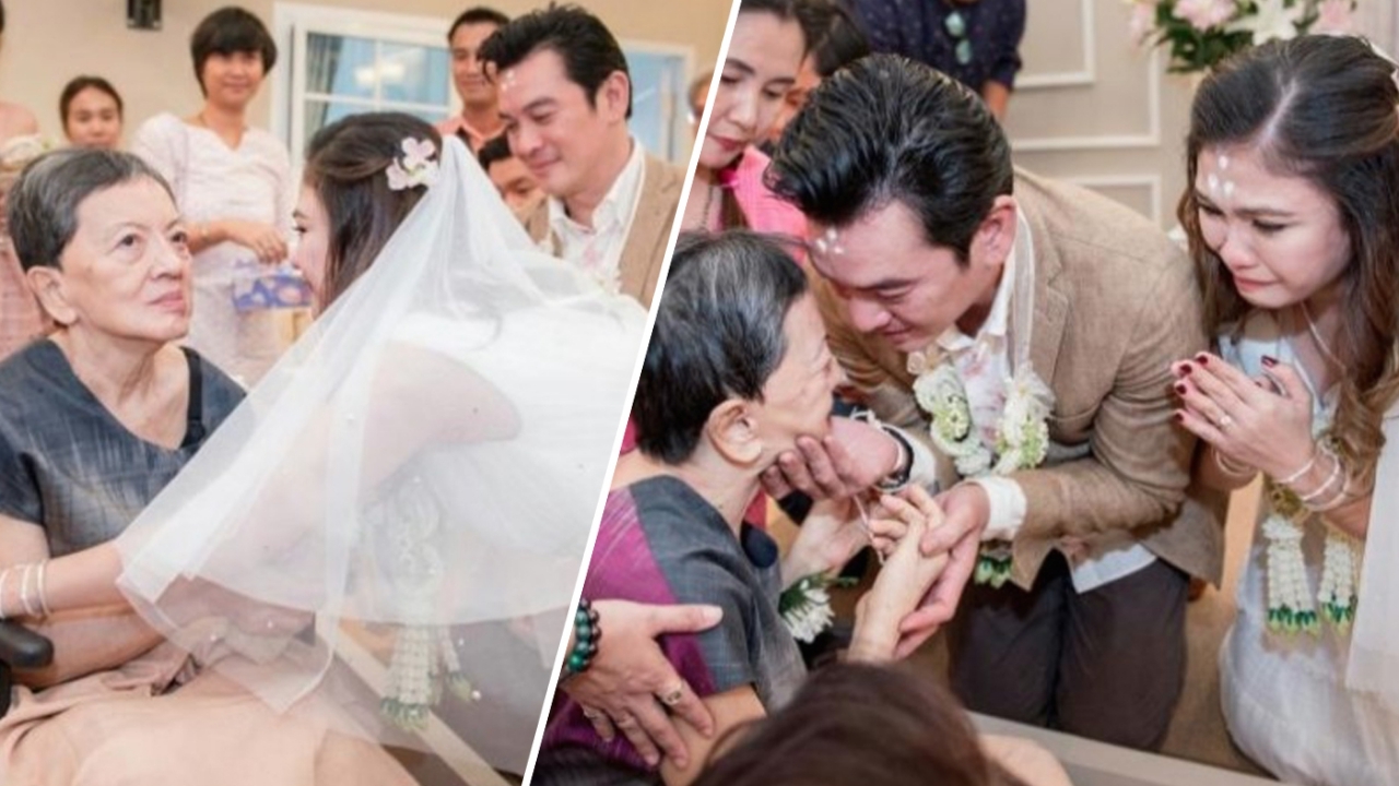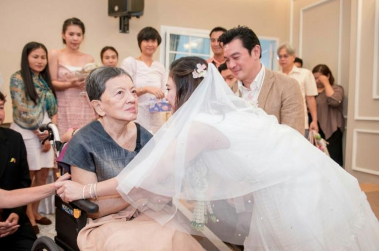 เป็นอีกหนึ่งภาพประทับใจในงานแต่งของชาคริต แย้มนาม กับ แอน ภัททิรา รุ่งโรจน์ ที่จัดขึ้น ณ เป๊กกี้ โคฟ รีสอร์ต จ.จันทบุรี โดยในงานนี้คุณแม่เจ้าบ่าวซึ่งยังมีอาการป่วย ต้องนั่งรถเข็นมาร่วมแสดงความยินดีกับลูกชายด้วย ทั้งนี้ในช่วงที่มีการรับไหว้ ทั้งคุณแม่และเจ้าบ่าวเจ้าสาวต่างมีน้ำตาคลอ ทำใ้ห้บรรยากาศในงานเป็นไปด้วยความอบอุ่นและซาบซึ้ง
