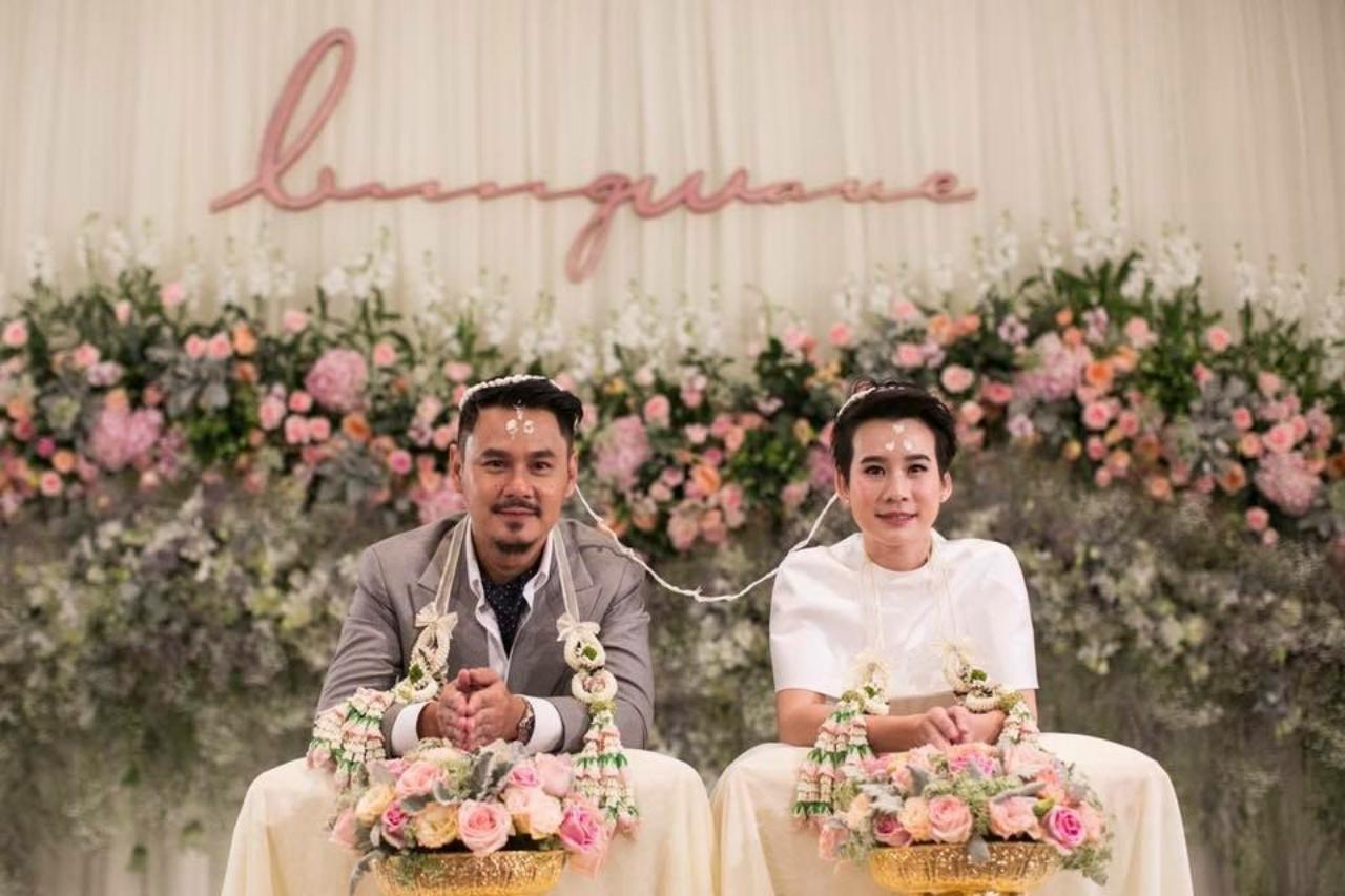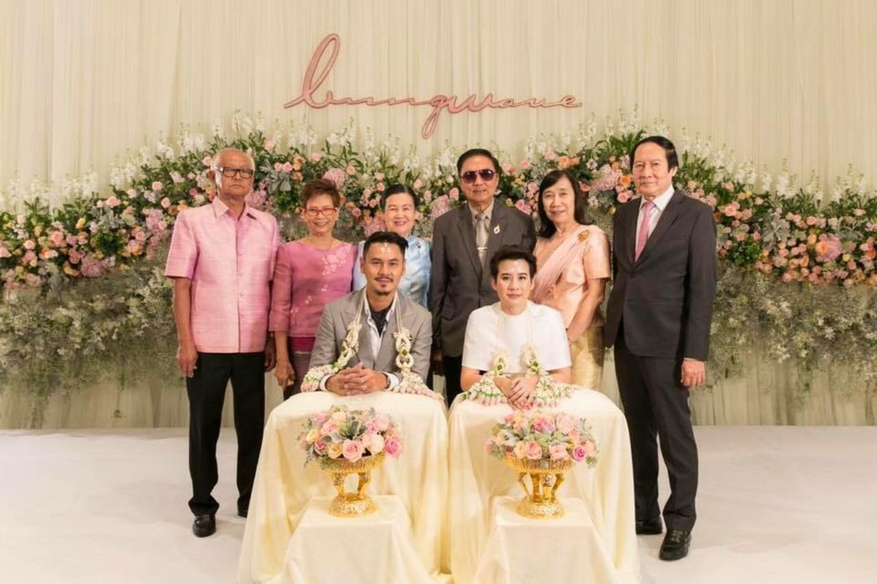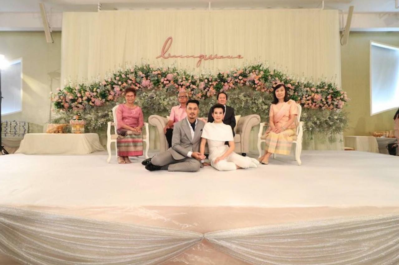 โดยภายในงานมีพิธีสู่ขอตามประเพณีของไทย จนกระทั่งเมื่อเวลา 08.29 น. คู่บ่าวสาวได้เริ่มพิธีหมั้น สวมแหวนตามฤกษ์ และพิธีรับไหว้ มีพระสงฆ์สวดพระพุทธมนต์ จากนั้นเวลา 11.15 น. ทั้งเวฟและบุ้งก็ได้เข้าพิธีหลั่งน้ำพระพุทธมนต์ โดยมีครอบครัวทั้งสองฝ่าย และเพื่อนๆ ที่ร่วมแสดงความยินดี และเป็นสักขีพยานรักของทั้งคู่ในงานมงคลสมรสในครั้งนี้