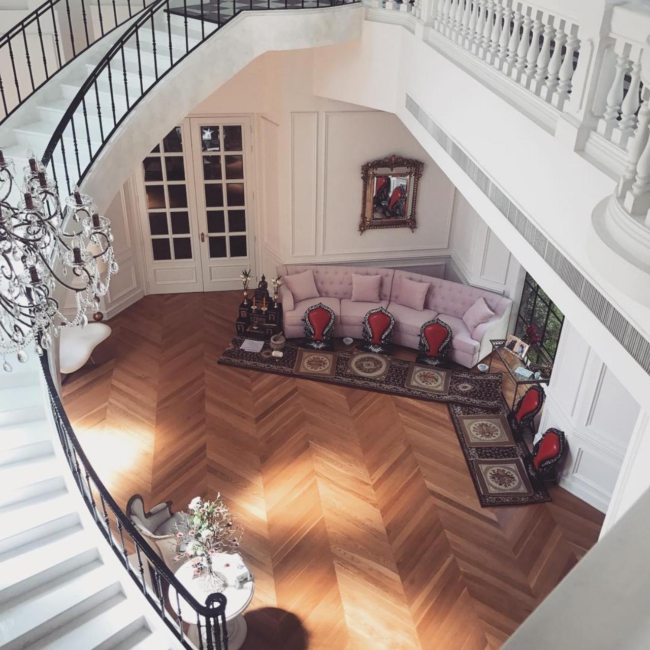 เพราะตกแต่งด้วยสไตล์เทพนิยายชนิดว่าเจ้าของบ้านดูกลายเป็นเจ้าหญิงเจ้าชายในวังกันเลยทีเดียว นอกจากนี้ยังมีมุมสระว่ายน้ำ มุมนั่งเล่นสวยๆ และเวลาจัดปาร์ตี้ที่บ้านหลังนี้ก็เริดๆ คูลๆ มาก ดูๆ ไปแล้วมูลค่าของบ้านนี้น่าจะไม่ต่ำกว่า 100 ล้านบาท เรียกว่าหรูระดับคฤหาสน์กันเลยทีเดียว