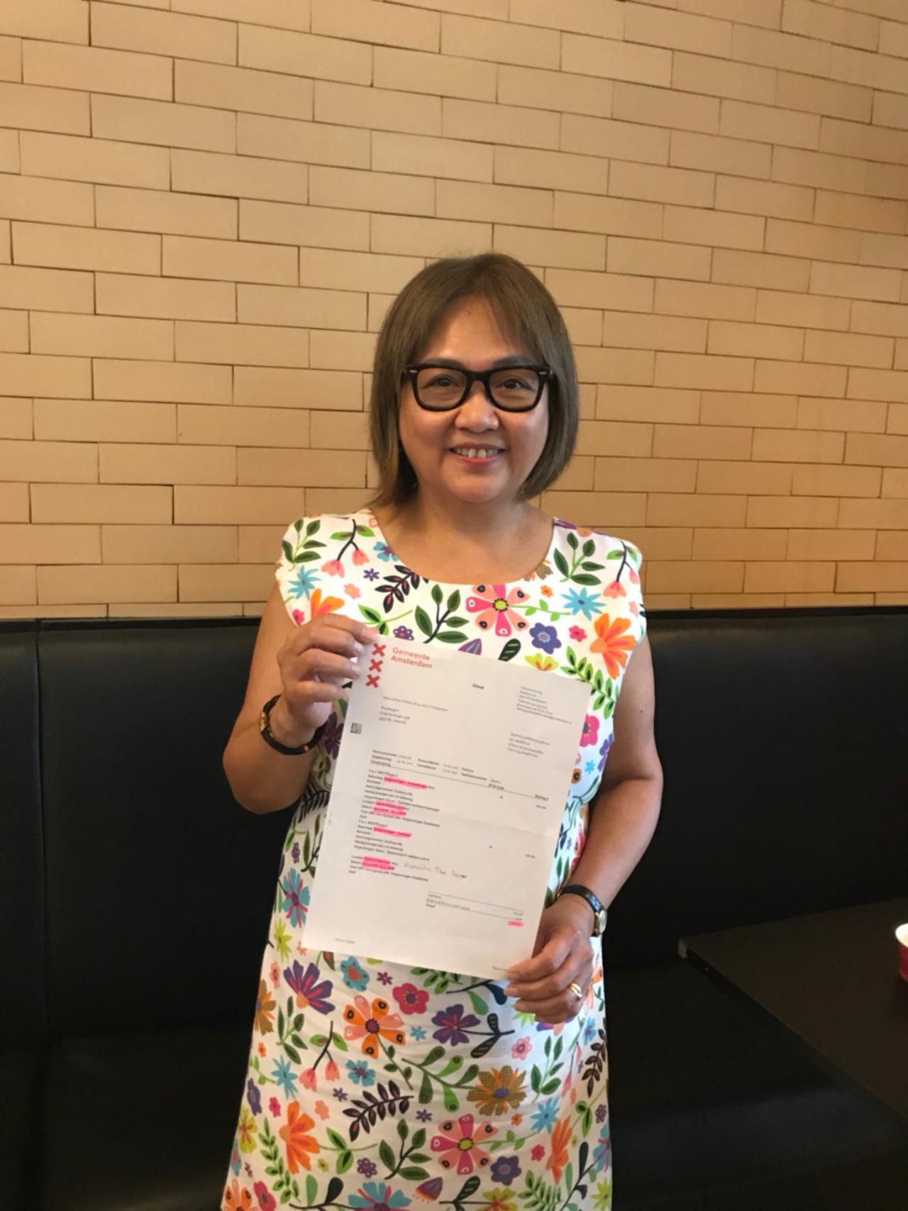 หลังจากนั้น เดือน พ.ค. 60 ตนได้รับเอกสารจากทางอำเภอสำนักงานของอัมสเตอร์ดัม เป็นค่าจอดรถของคุณฉลองหน้าร้านอาหารไทยเดิม เลยติดต่อมาทางเลขา แต่เขาบอกว่าจ่ายไปแล้ว แต่ความจริงยังไม่ได้จ่าย เลยติดต่อไปทางคุณอาร์ต ศุภวัฒน์ แต่เขากลับพูดจาไม่ดีกลับมา ตนแค่รู้สึกว่าถ้าพูดจากันดีๆ ก็จะได้ไม่ต้องเสียความรู้สึกกัน จึงส่งเรื่องไปทางช่อง 7 เขาก็ตามเรื่องให้ แต่ยังไม่มีความคืบหน้า ซึ่งก็ตัดใจแล้ว