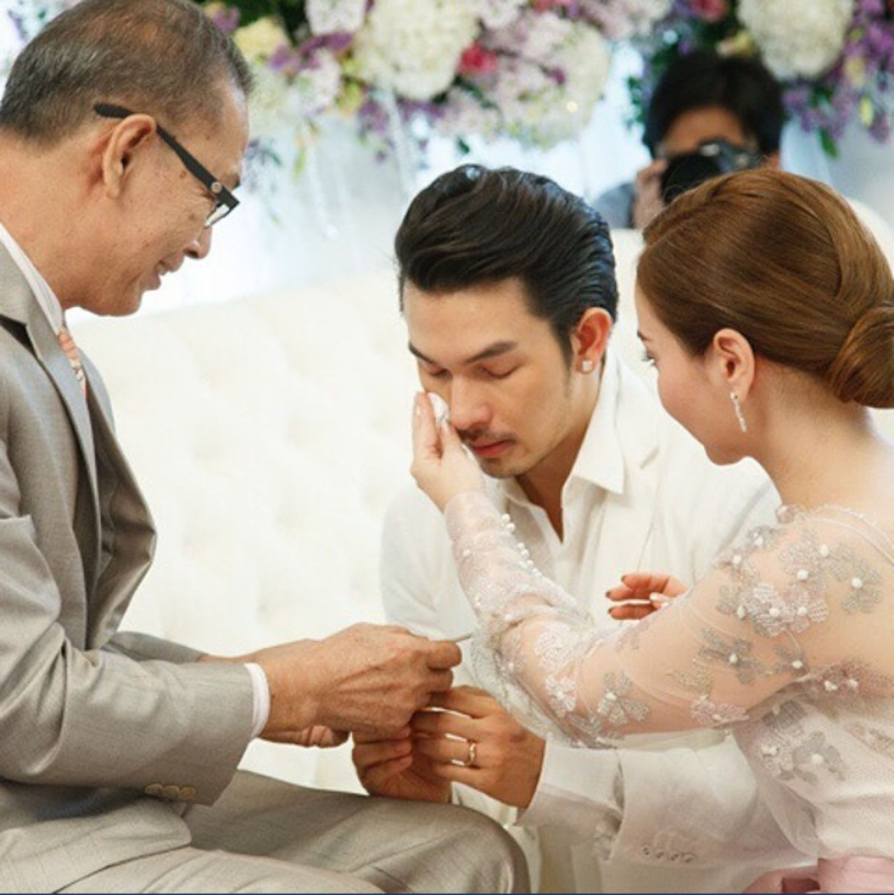 ซึ่งขณะทำพิธีเจ้าบ่าวซาบซึ้งจนต้องหลั่งน้ำตาออกมา โดยมีเจ้าสาวลุกขึ้นมาโอบกอดปลอบใจ โดยชอตนี้เป็นที่ถูกแชร์กันเป็นจำนวนมากในขณะนั้น ทำให้หลายคนซึ้งตามกับความรักที่ สงกรานต์ มีให้กับ แอฟ และอยากมีโมเมนต์แบบนี้กันบ้าง สงกรานต์ก็ได้เคยให้คำมั่นสัญญากับแอฟไว้ว่า จะดูแลให้ดีที่สุด ไม่ต้องทำงานหนัก ซึ่งเขาจะทำหน้าที่หัวหน้าครอบครัว คอยดูแลแอฟและลูกเอง