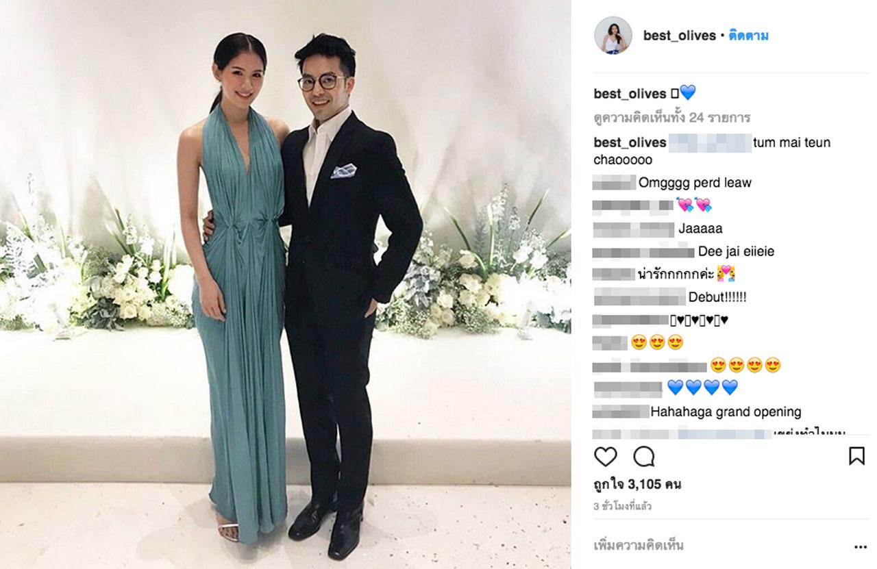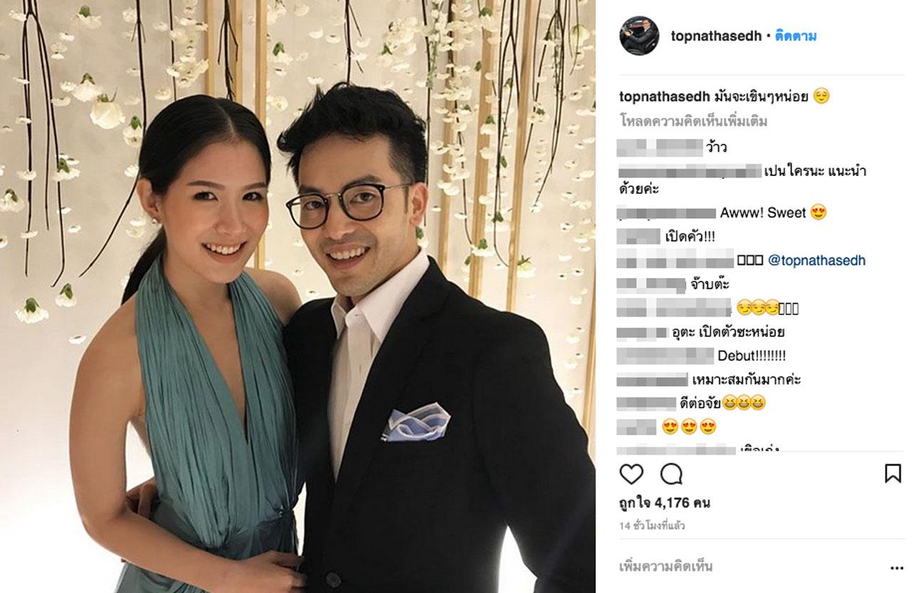 โดยทั้งคู่ได้ลงรูปคู่กันในงานแต่ง โดยฝ่ายชายมีแคปชั่นมุ้งมิ้งน่ารักตามประสาคนกำลังมีความรักว่า “มันจะเขินๆ หน่อย” และหลังจากที่ทั้งคู่ลงรูปเปิดตัวกันไป ก็มีเพื่อนๆ เข้ามาคอมเมนต์แซวกันมากมาย
