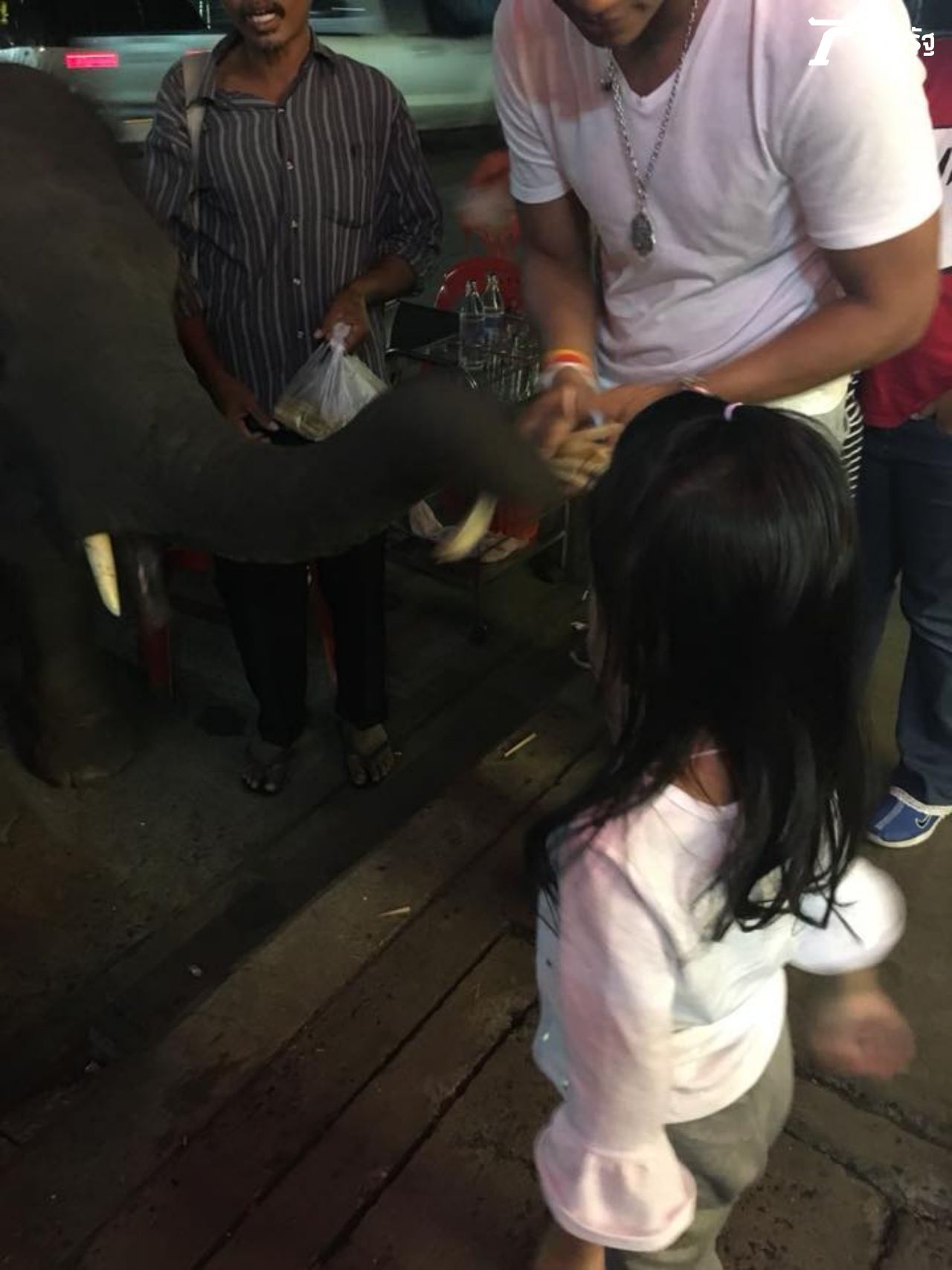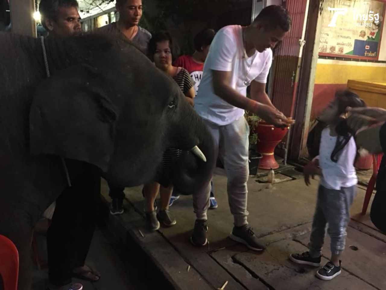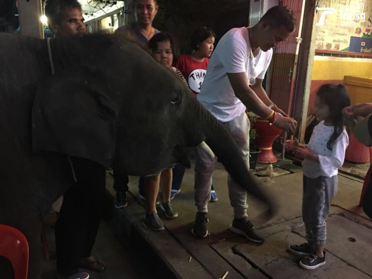 บันเทิงไทยรัฐออนไลน์ เก็บภาพสุดพิเศษของพ่อจากับน้องจอมขวัญมาฝากกัน ขณะที่กำลังนั่งกินข้าวที่ร้านริมทางในตัวเมืองสุรินทร์ ช้างน้อยพร้อมคนเลี้ยงเดินมาหน้าร้าน ขอให้ซื้ออ้อยเป็นอาหารให้ช้างกินหน่อย จา พนม เห็นช้างแล้วรีบอุ้มน้องจอมขวัญไปดูช้างและซื้ออ้อยหลายถุงให้ทันที พร้อมจิกกัดตัวเอง เพราะหลายคนเวลาเห็น จา พนม ชอบเหน็บขำๆ จา พนม ด้วยประโยคฮิตติดปาก จากหนังต้มยำกุ้งว่า ช้างอยู่ไหน! "ช้างอยู่นี่แล้ว! ไม่ต้องตามหากันแล้วนะ (หัวเราะ)".