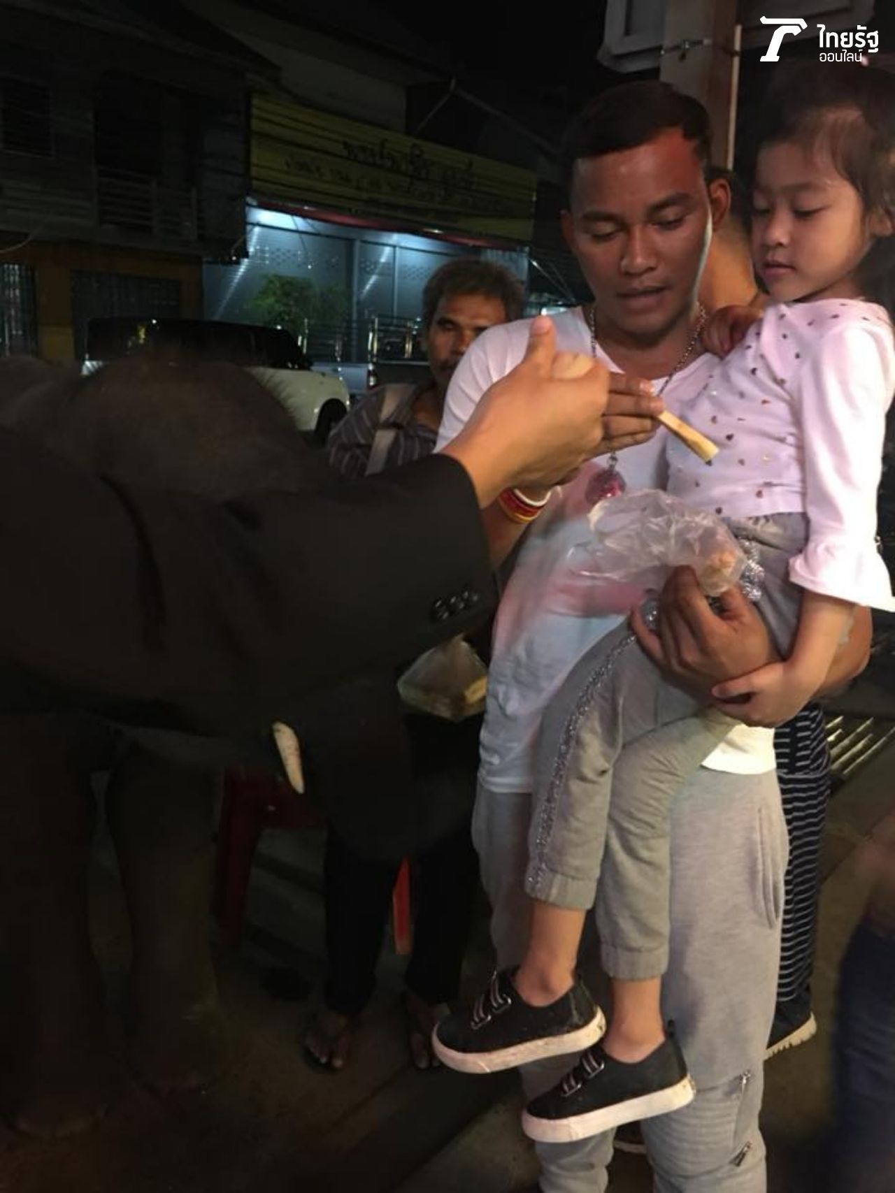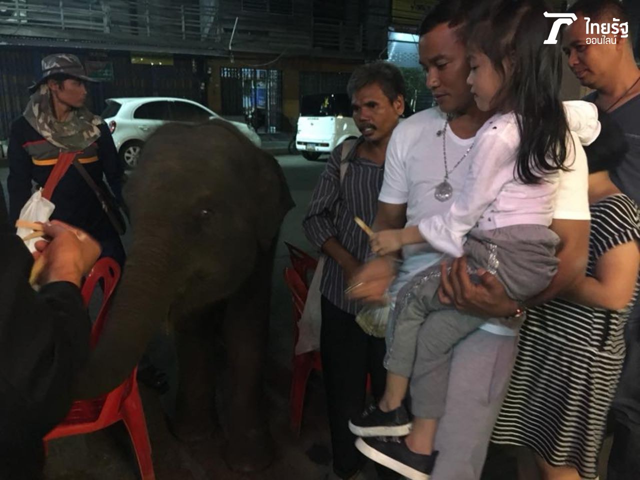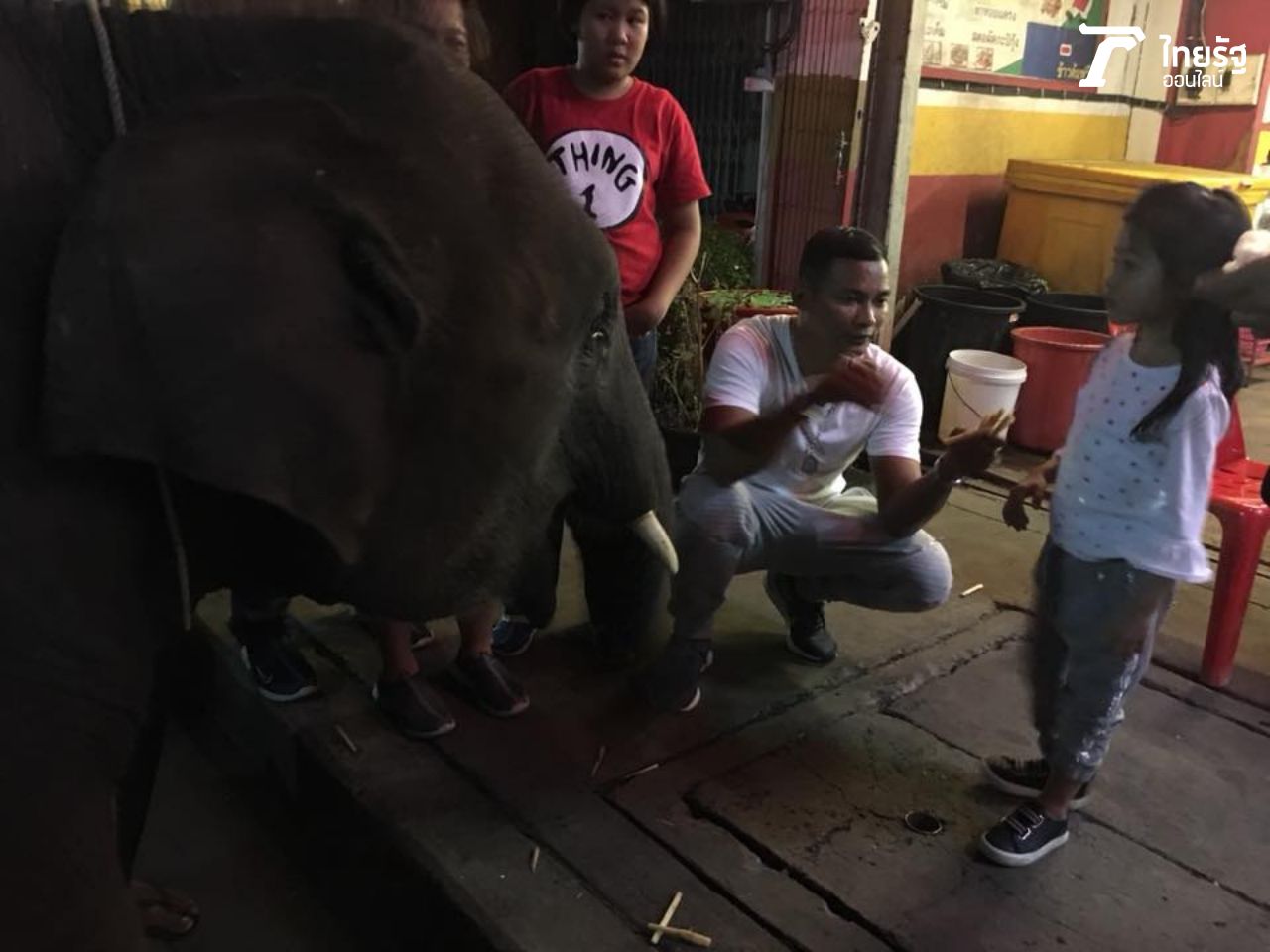 บันเทิงไทยรัฐออนไลน์ เก็บภาพสุดพิเศษของพ่อจากับน้องจอมขวัญมาฝากกัน ขณะที่กำลังนั่งกินข้าวที่ร้านริมทางในตัวเมืองสุรินทร์ ช้างน้อยพร้อมคนเลี้ยงเดินมาหน้าร้าน ขอให้ซื้ออ้อยเป็นอาหารให้ช้างกินหน่อย จา พนม เห็นช้างแล้วรีบอุ้มน้องจอมขวัญไปดูช้างและซื้ออ้อยหลายถุงให้ทันที พร้อมจิกกัดตัวเอง เพราะหลายคนเวลาเห็น จา พนม ชอบเหน็บขำๆ จา พนม ด้วยประโยคฮิตติดปาก จากหนังต้มยำกุ้งว่า ช้างอยู่ไหน! "ช้างอยู่นี่แล้ว! ไม่ต้องตามหากันแล้วนะ (หัวเราะ)".