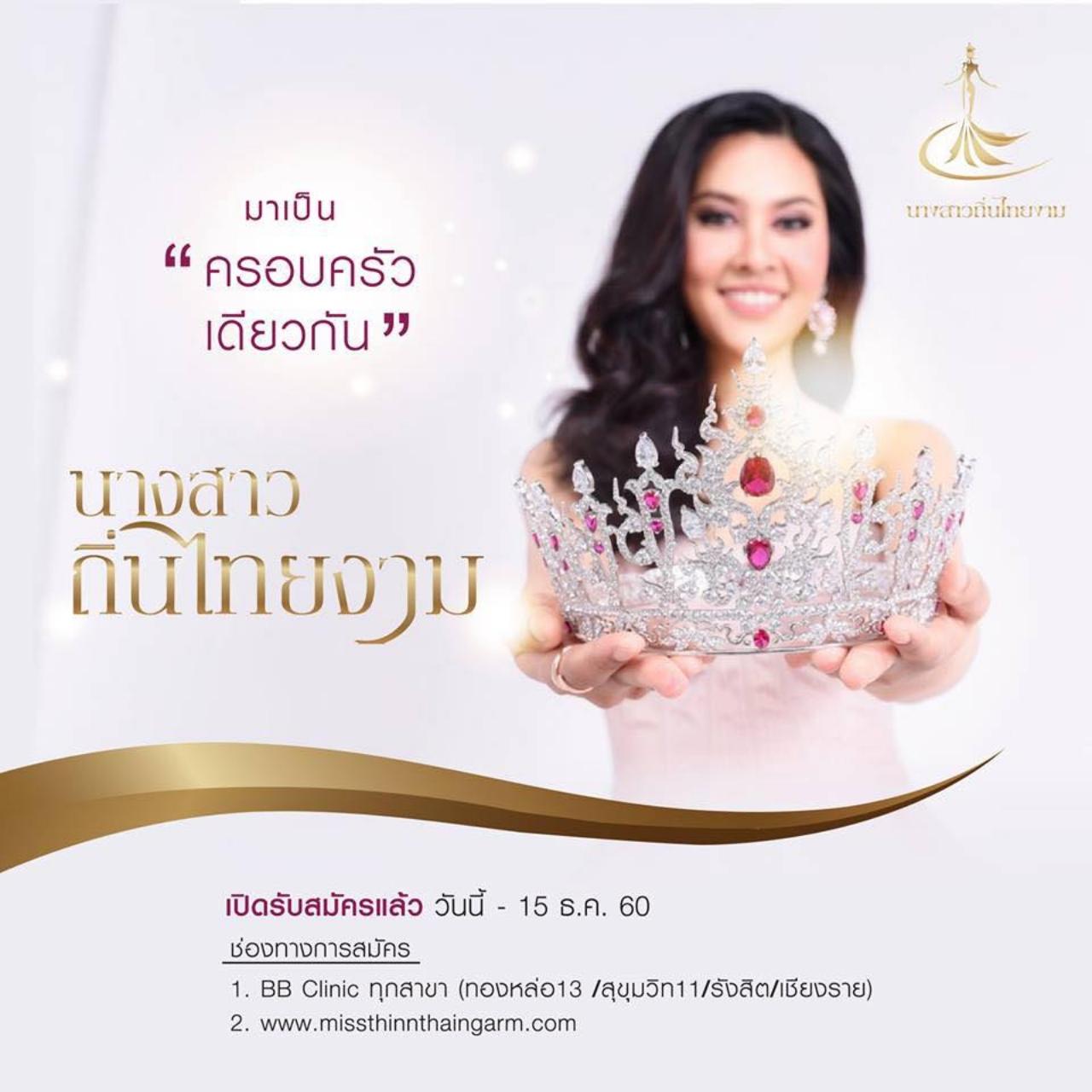 เหลือเวลาอีกเพียงไม่นาน รับสมัครกันแล้วตั้งแต่วันนี้ จนถึงวันที่ 15 ธันวาคม 2560 ปีนี้เวทีนางสาวถิ่นไทยงาม 2561 จะจัดงานอย่างยิ่งใหญ่ มีรางวัลมูลค่ารวมกว่า 5 ล้านบาท