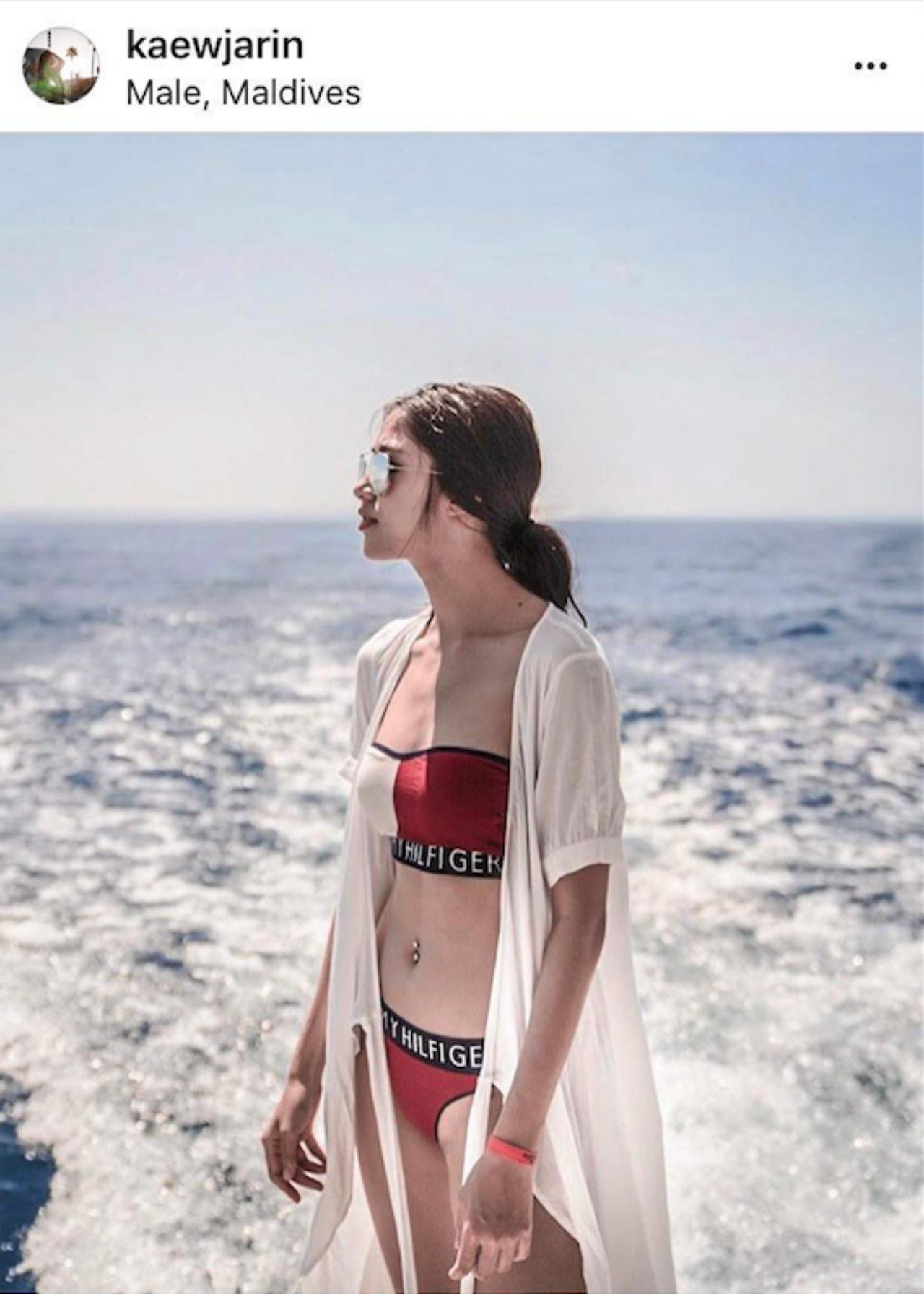 “ถ่ายเองค่ะ (ยิ้ม) นานๆ ไปทะเลที โตแล้วด้วย ก็ใส่นิดๆ หน่อยๆ ก็แม่ไม่ว่าค่ะ ถามว่าเขินมั้ย ตอนแรกเราก็คิดอยู่ว่าจะลงดีรึเปล่า แต่รูปมันสวย ไม่ได้โชว์หุ่นหรืออะไร เราแค่มองว่าทะเลตรงนี้มันสวย มุมมันได้ รูปสวยก็เลยลง ยอมรับว่ากลัวจะมีดราม่านิดหน่อยค่ะ รูปมันไม่ได้น่าเกลียดเราก็โอเค”
