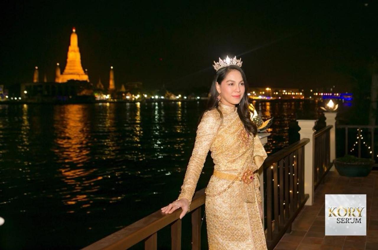 จอยตั้งใจแต่งสวยด้วยชุดไทย เพื่อมาร่วมงาน Kory Serum presents Exclusive Dinner with 5 Men of 2 Moons ดินเนอร์สุดพิเศษกับหนุ่มวัยใสจากซีรี่ส์ เดือนเกี้ยวเดือน นำโดย บาส, คิมม่อน, คอปเตอร์, เต้ และ ตี๋ งานนี้จัดโดย โก้ ธีรศักดิ์ ณ วังจักรพงษ์ ซึ่งเป็นบ้านของ ฮิวโก้ จุลจักร จักรพงษ์ สามีของ ฮาน่า วังจักรพงษ์เป็นวังเก่าแก่มาหลายยุคสมัยแล้ว ก็เลยต้องแต่งชุดไทย ให้เข้ากับบรรยากาศนั่นเอง.