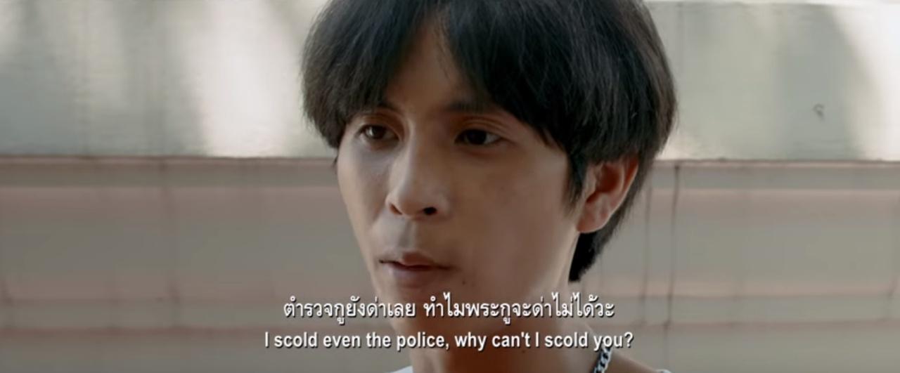 อนาคตอยากจะเล่นหนังไม่ต้องไปด่าตำรวจหรอก รู้เหรอว่าเค้าด่าเพราะอะไร เค้าต้องมีอะไรเค้าถึงด่า เพราะเราทำหนังสะท้อนสังคม รับผิดชอบสังคม ก็ให้ตัวละครหลวงพี่แจ๊สสอนคนในหนัง โตๆ กันแล้ว หมาเลียตูดไม่ถึงแล้วยังเป็นแบบนี้ เค้าไม่ได้ด่าตัวเองทำเป็นเดือดเป็นร้อน หนังคือหนัง เป็นโลกมายา อย่ามาซีเรียส พูดกันอยู่นั่นแหละ ไม่มีอะไรทำ