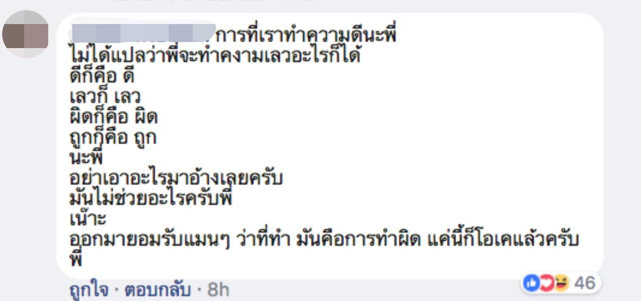 พร้อมยังมีแฟนคลับว่าสิ่งที่ เสก ทำยิงปืนขึ้นฟ้ามันผิด! “เฮียต้องเข้าใจ สิ่งที่เฮียทำไปมันผิดนะเฮีย สั้นๆๆ ง่ายๆๆ ครั้งนี้เฮียผิด”, “การที่เราทำความดีนะพี่ ไม่ได้แปลว่าพี่จะทำความเลวอะไรก็ได้ ดีก็คือ ดี เลวก็ เลว ผิดก็คือ ผิด ถูกก็คือ ถูก นะพี่ อย่าเอาอะไรมาอ้างเลยครับ มันไม่ช่วยอะไรครับพี่ เน๊าะ ออกมายอมรับแมนๆ ว่าที่ทำ มันคือการทำผิด แค่นี้ก็โอเคแล้วครับพี่”.