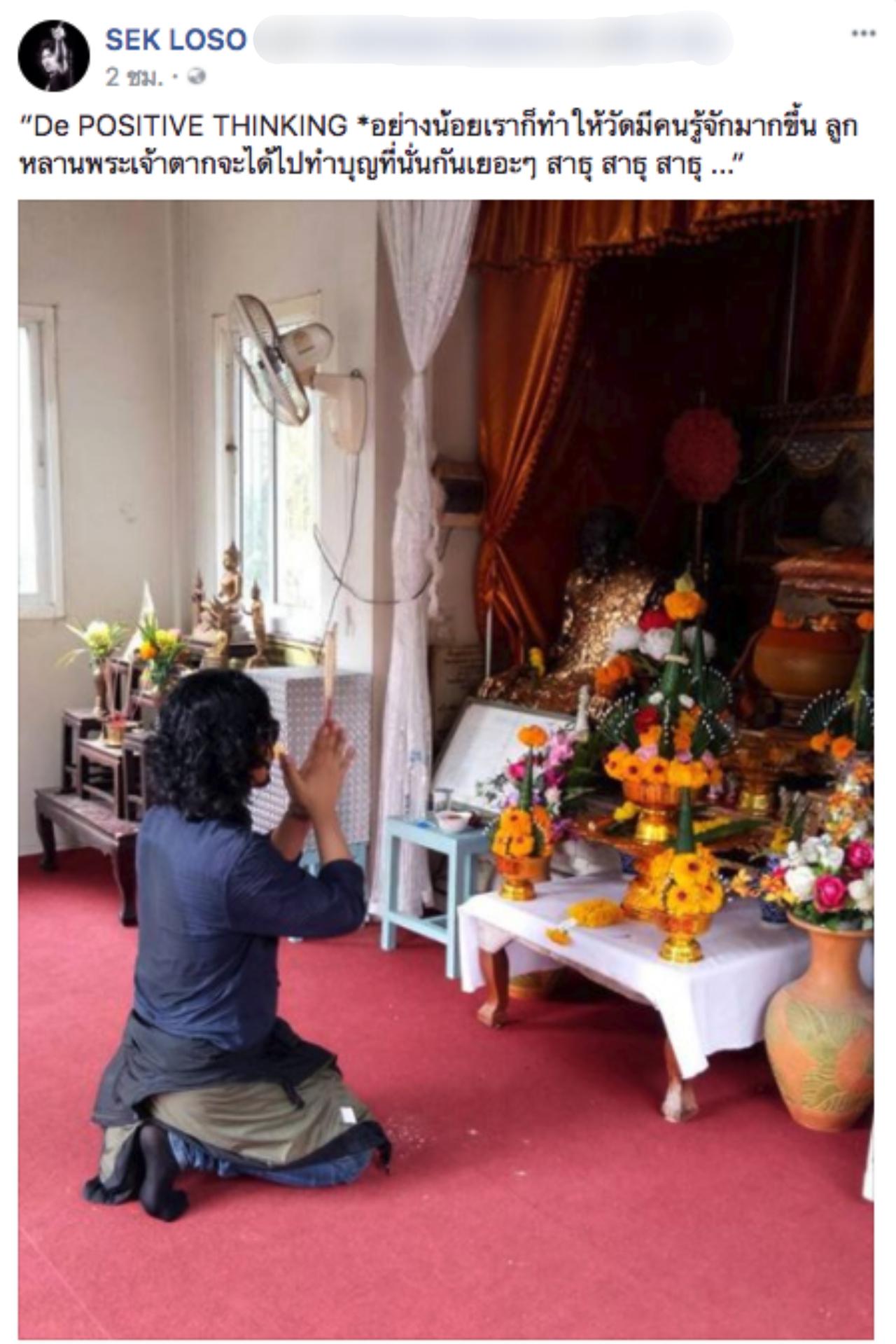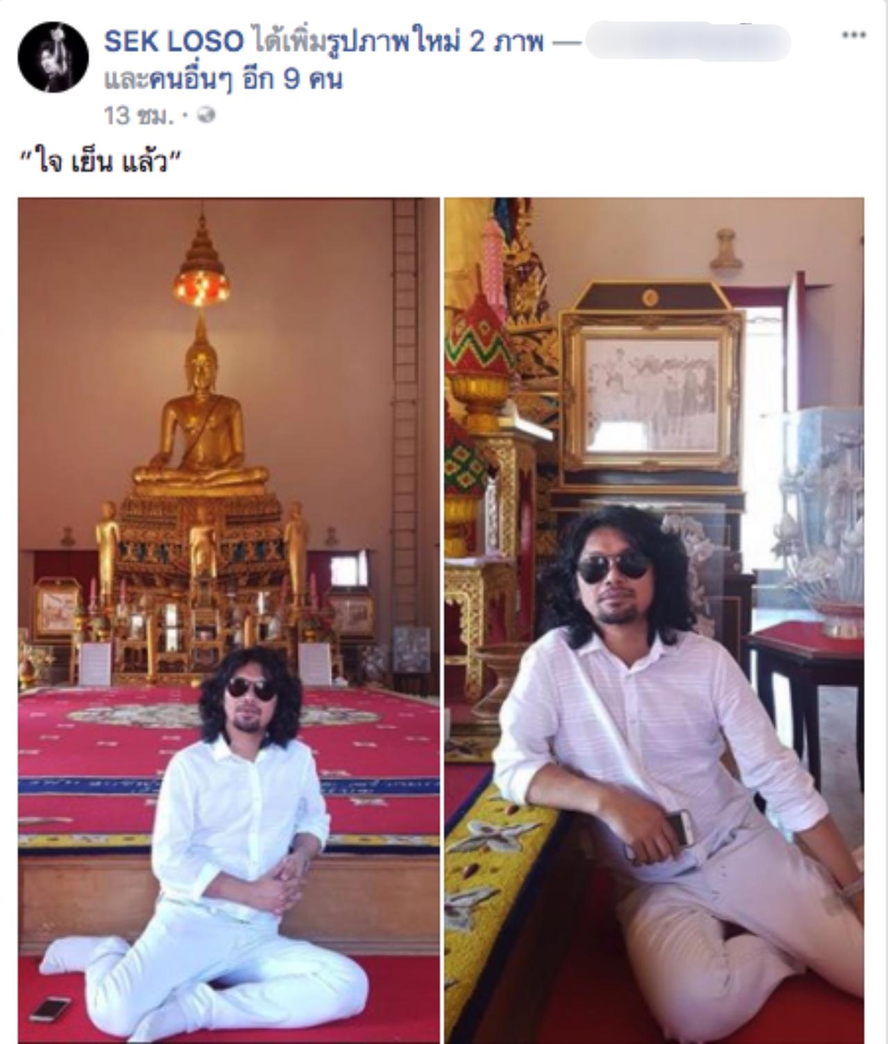 ล่าสุดในเฟซบุ๊กแฟนเพจของ เสก โลโซ เจ้าตัวก็ยังคงโพสต์ข้อความตามปกติทักทายแฟนเพจเหมือนเดิมทุกวัน พร้อมกับขอบคุณทุกคนที่เป็นห่วง อีกทั้งยังได้บอกว่า ได้ใจเย็นลงแล้ว และจะคิดบวกว่าการที่ไปทำวีรกรรมในวัดนั้น อย่างน้อยก็ทำให้มีคนรู้จักวัดเยอะขึ้น