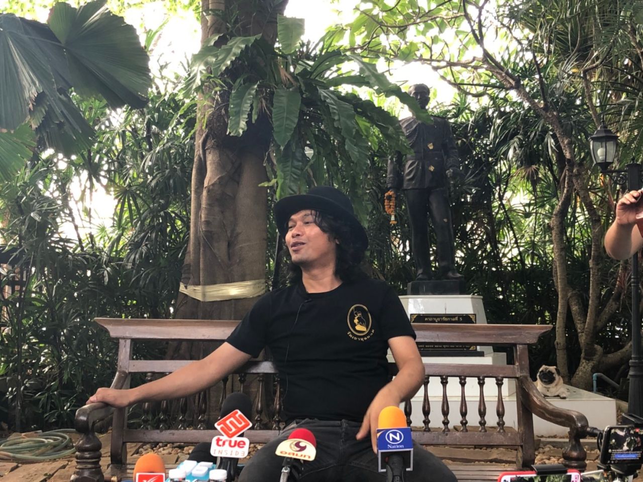 จะเล่าให้ฟังว่า ผมไปวัดมาหลายครั้ง เป็นลูกศิษย์ของหลวงพ่อ ผมนับถือพระเจ้าตากสินมหาราช ก็เลยรู้ว่าพระเจ้าตากสินไปบวชที่วัดนั้น และสวรรคตที่นั่น ผมไปทอดผ้าป่า ทำบุญที่วัดนี้หลายครั้ง แล้ววันที่ 28 ธ.ค.ที่ผ่านมา เป็นวันครบรอบ 250 ปีของพระเจ้าตากสิน ท่านเจ้าอาวาสขอให้ไปเล่นคอนเสิร์ต ผมไม่ได้เงินสักบาท ไปเล่นคอนเสิร์ตให้ท่าน เวลาเดินทางไปต่างจังหวัดถ้าไม่ได้ขึ้นเครื่องผมจะพกปืนไปด้วยทุกครั้ง แต่ตอนนี้เจ้าหน้าที่ยึดไปแล้ว