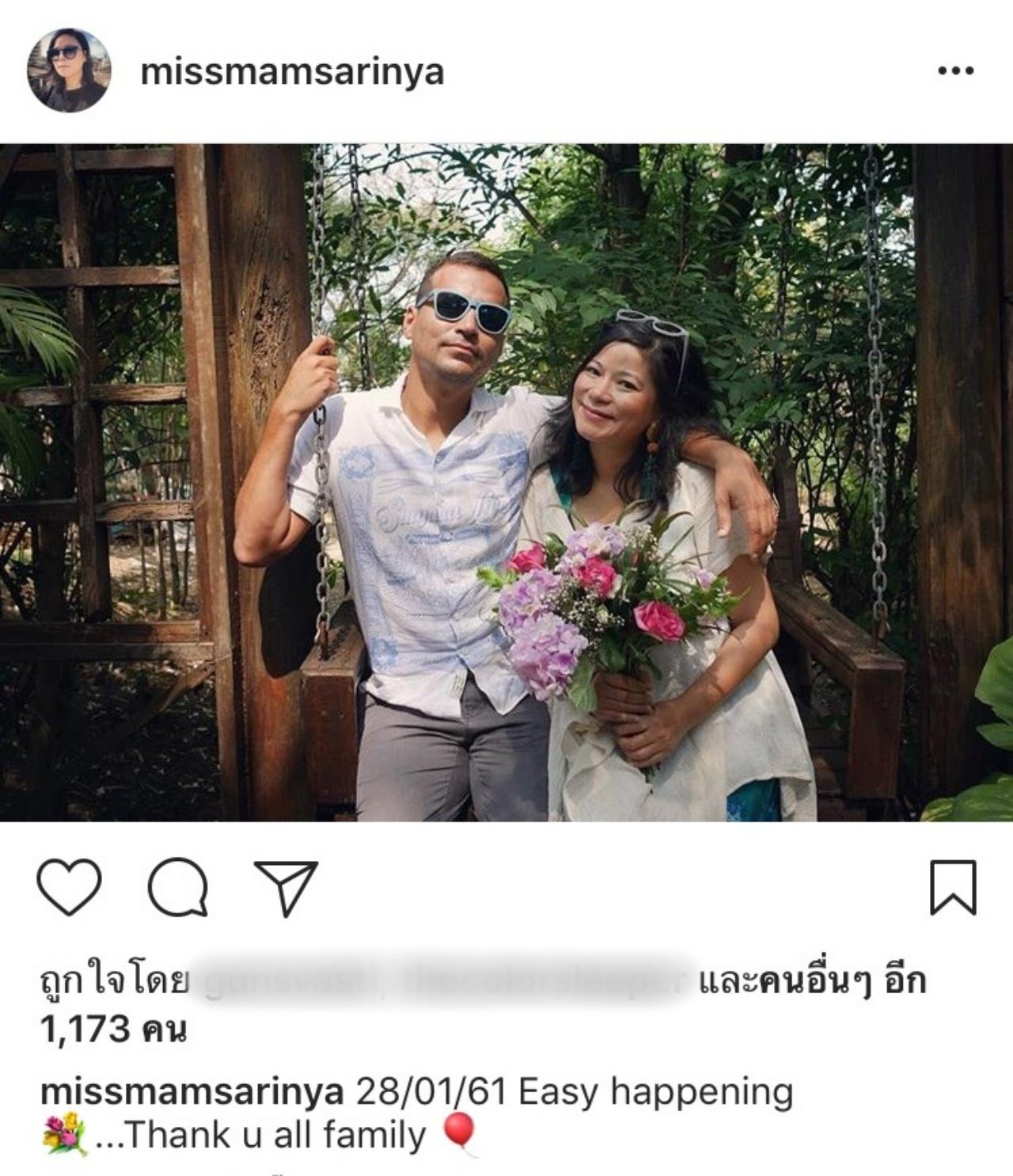 ซึ่งสาวแหม่ม ว่าที่เจ้าสาวคนสวยได้โพสต์รูปถ่ายคู่กับหนุ่มเรย์ พร้อมมีช่อดอกไม้ และแคปชั่นว่า “28/01/61 Easy happening Thank u all family" (28/01/61 มันเกิดขึ้นอย่างง่าย ๆ ขอบคุณทุกคนในครอบครัว) ซึ่งหลังจากที่สาวแหม่มโพสต์รูปและข้อความดังกล่าว ก็มีบรรดาเพื่อนสนิทของทั้งคู่เข้ามาแสดงความยินดีและอวยพรว่าที่เจ้าบ่าวเจ้าสาวกันอย่างมากมาย