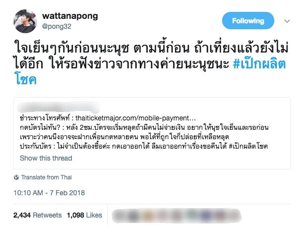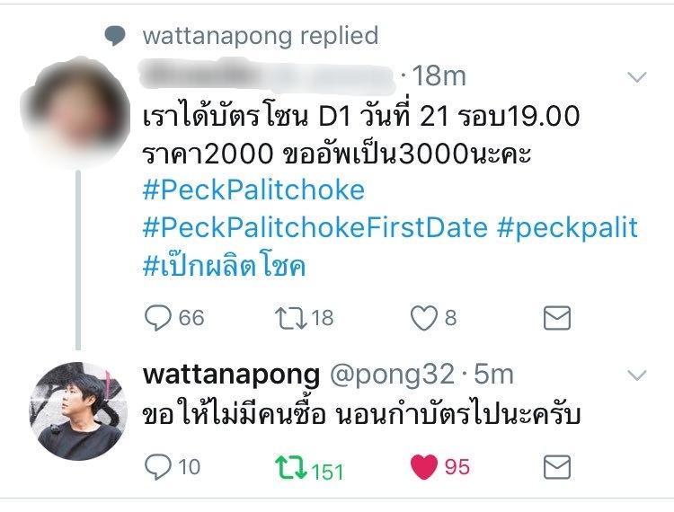 จนทำให้ ป่อง ผู้จัดการของเป๊ก ได้ทวีตข้อความว่า “ใจเย็นๆ กันก่อนนะนุช ตามนี้ก่อน ถ้าเที่ยงแล้วยังไม่ได้อีก ให้รอฟังข่าวจากทางค่ายนะนุชนะ #เป๊กผลิตโชค” และเข้าไปตอบโต้คนขายบัตรผีว่า "ขอให้ไม่มีคนซื้อ นอนกำบัตรไปนะครับ" ด้วย