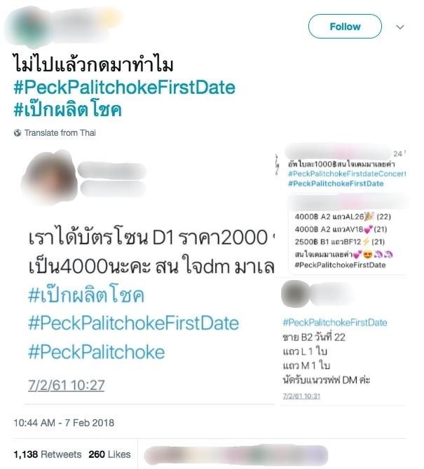 หลังจากนั้นนุช (แฟนคลับของเป๊ก) อีกหลายคนที่กดจองบัตรไม่ทันก็โพสต์ข้อความทำนองเสียใจที่ไม่ได้บัตร และเกิดดราม่าเมื่อมีนักกดบัตรนำบัตรคอนเสิร์ตที่ได้มาขายต่อในราคาสูงขึ้นกว่าพันบาท ทำให้นุชทั้งหลายไม่พอใจและทวีตถล่มวิจารณ์การกระทำดังกล่าวอย่างมาก