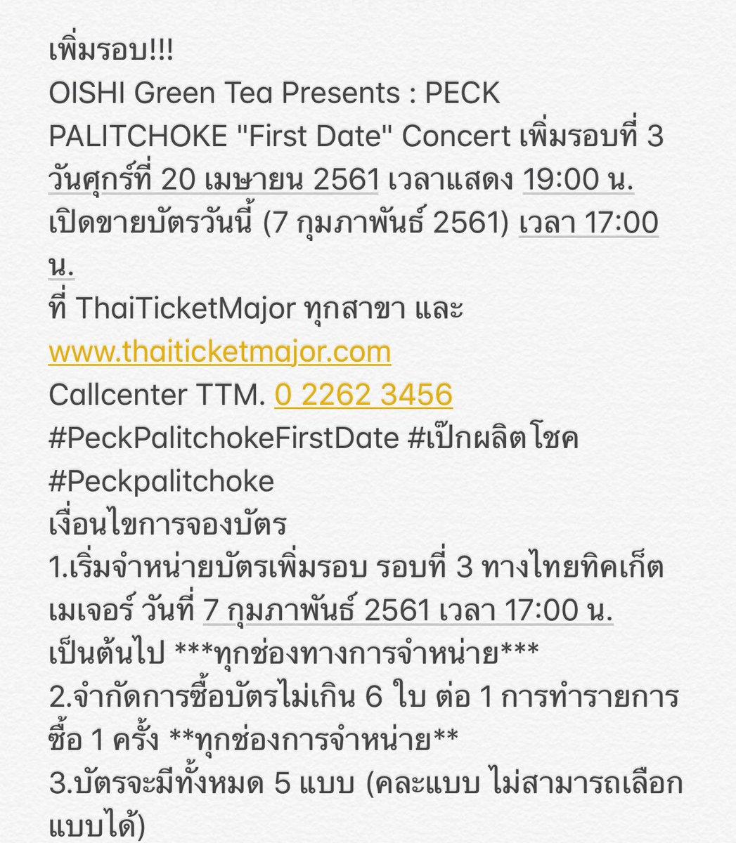 เรียกว่ากระแสแรงไม่มีตกจริงๆ สำหรับนักร้องหนุ่ม เป๊ก ผลิตโชค อายนบุตร ที่กำลังจะมีคอนเสิร์ต “PECK PALITCHOKE FIRST DATE Concert” ซึ่งจะจัดขึ้นในวันที่ 21-22 เม.ย. นี้ ณ รอยัลพารากอน ฮอลล์ ศูนย์การค้าสยามพารากอน และเปิดให้จองวันแรกเมื่อ 10 โมงเช้าของวันที่ 7 ก.พ. 2561 ที่ผ่านมา และเวลาผ่านไปเพียงแค่ 5 นาทีเท่านั้น บัตรคอนเสิร์ตก็ถูกจองเต็มหมดแล้ว