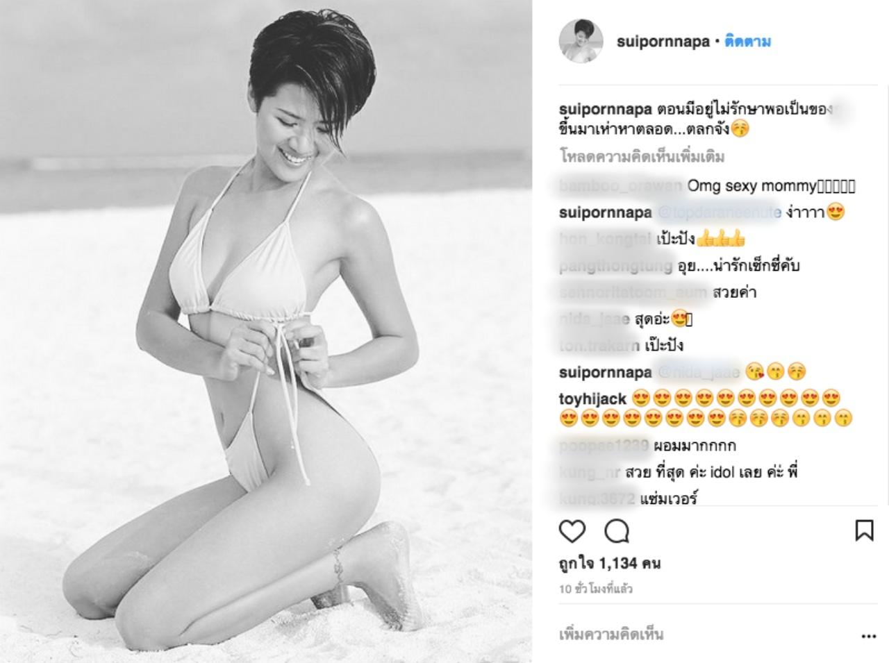 ออกมาเปิดใจถึงเรื่องความรัก และสามีคนปัจจุบันในรายการทีวีไปเมื่อสัปดาห์ก่อน ล่าสุดนักแสดงสาวสุดแซ่บ สุ่ย พรนภา ก็ได้โพสต์ภาพของตัวเองในชุดบิกินีสุดเซ็กซี่ ที่หนุ่มๆ เห็นแล้วต้องซี้ดซ้าดกันเป็นแถว แต่พอเลื่อนอ่านแคปชั่น กลับไม่ตรงกับภาพที่สาวสุ่ยลงแต่อย่างใด เพราะแคปชั่นนั้นแซ่บ และแรงกว่า