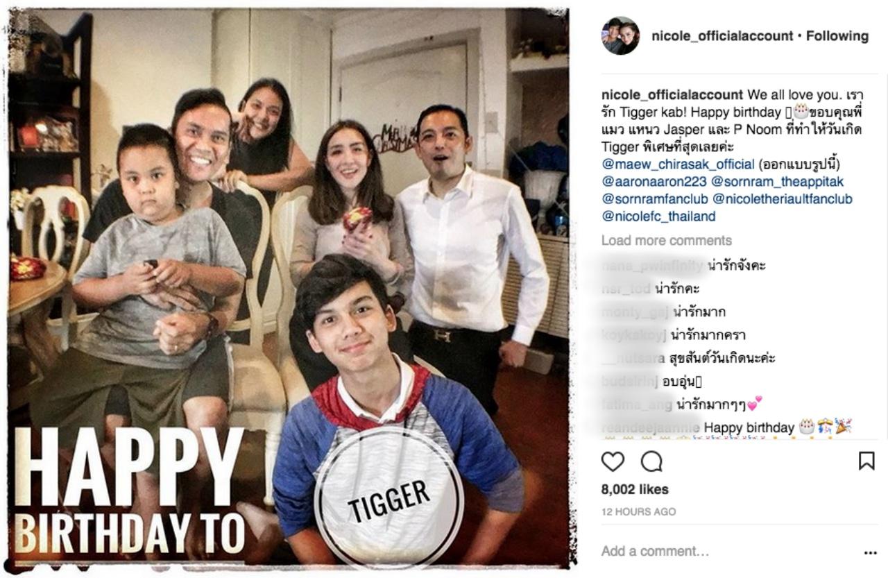 และ “We all love you. เรารัก Tigger kab! Happy birthday ขอบคุณพี่แมว แหนว Jasper และ P Noom ที่ทำให้วันเกิด Tigger พิเศษที่สุดเลยค่ะ”