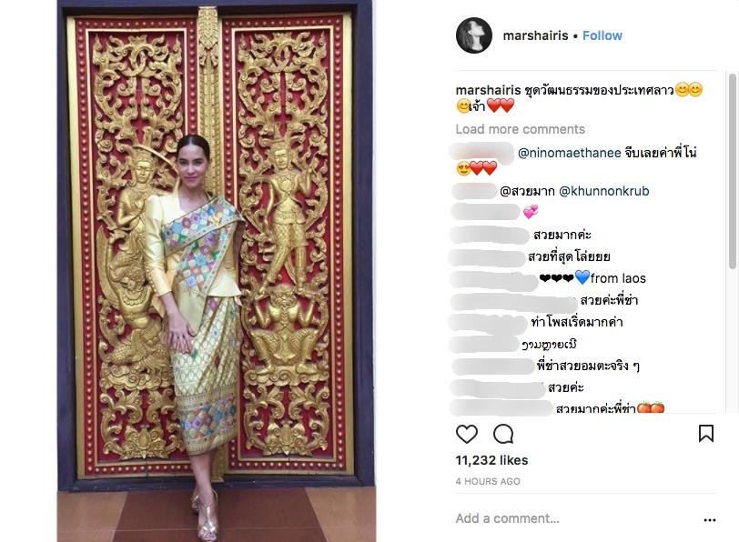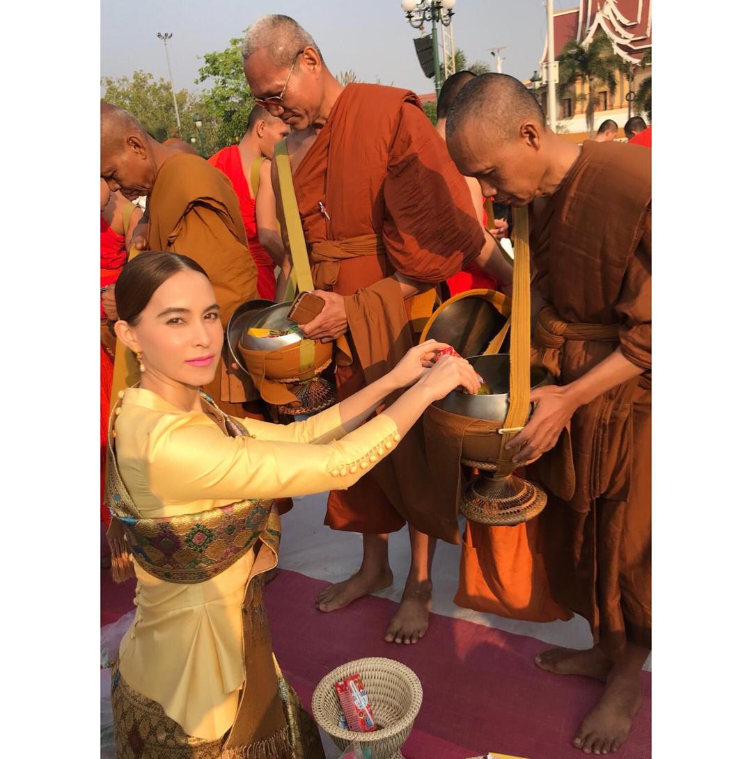 โดย มาช่า ได้โพสต์คลิปตนเองมาร่วมทำบุญที่พระธาตุหลวง หรือพระเจดีย์โลกะจุฬามณี ก่อนที่จะโพสต์ภาพคู่กับโน้ตและภาพตอนทำบุญตักบาตรและเขียนแคปชั่นว่า “สาธุค่ะ” ก่อนที่จะโพสต์ภาพตัวเองและเขียนข้อความว่า “ชุดวัฒนธรรมของประเทศลาวเจ้า” งานนี้แฟนๆ เลยเข้ามาอนุโมทนาสาธุพร้อมทั้งชมว่าเจ้าตัวในชุดสาวชาวลาวสวยมากจริงๆ.