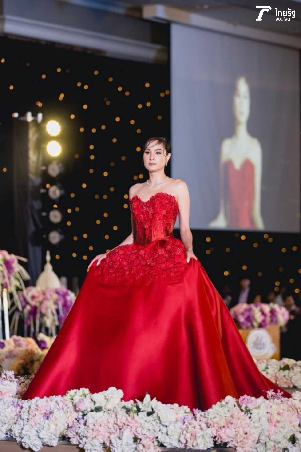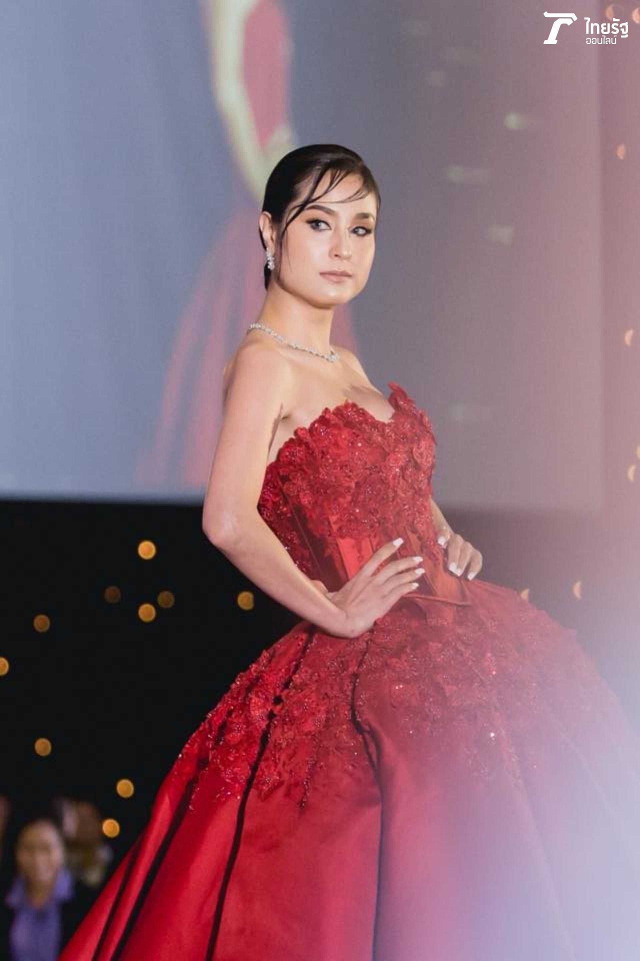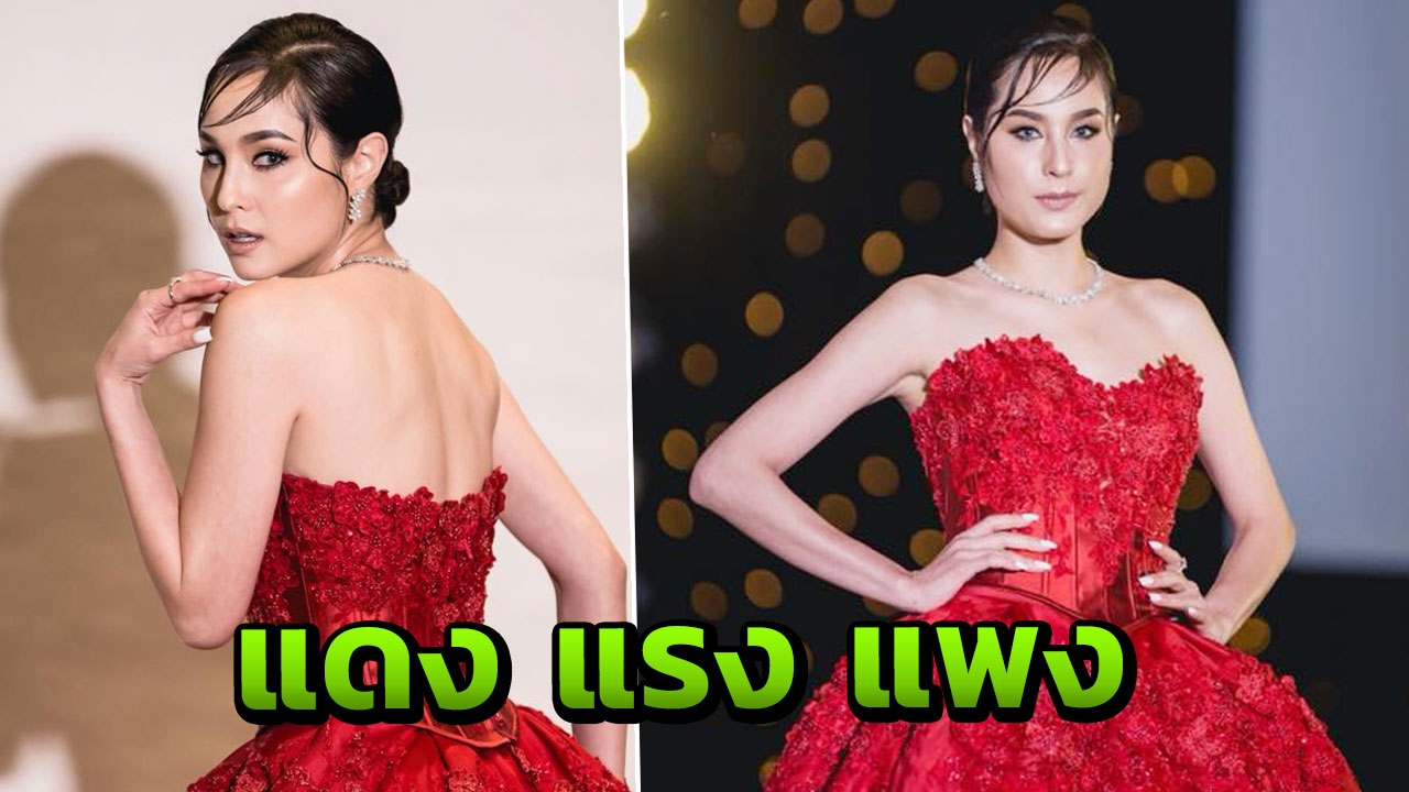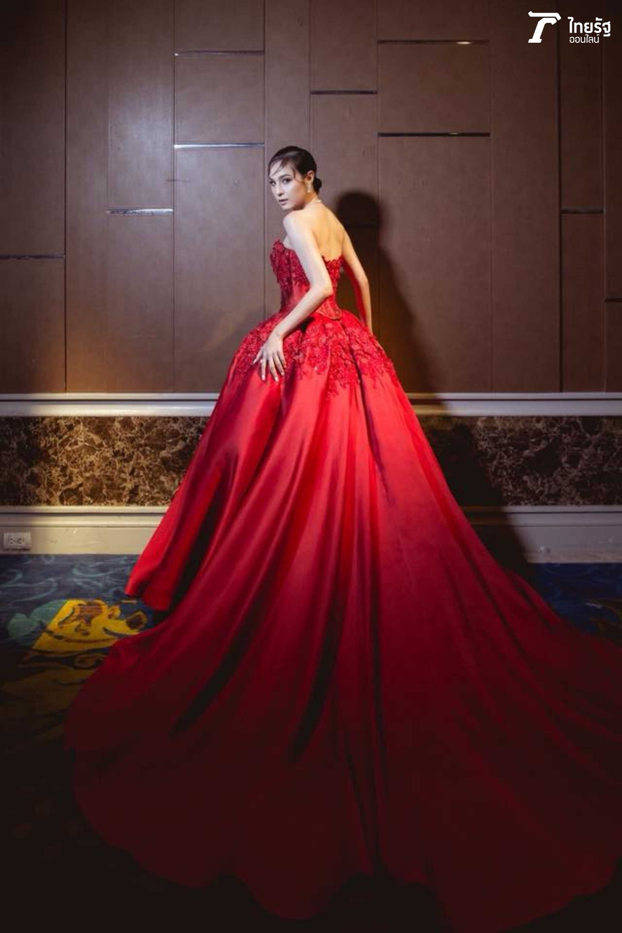 ขวัญแดงเด่นมาแต่ไกล ในชุดสุดประณีตบรรจงของแบรนด์ดัง ฟินาเล่เวดดิ้งสตูดิโอ FINALE WEDDING STUDIO ซึ่งออกแบบโดยสองดีไซเนอร์แถวหน้าของไทย ปลา สุดจิตร์ สุดจิตต์, เก เกสินี กล่ำอยู่สุข ออร่าแรงชัดมากๆ เรียกว่าขวัญเป็นนางเอกเรตติ้งทะลุจอ เป็นนางแบบก็เก่งกาจ มีลีลาที่เตะตาไม่เหมือนใคร.