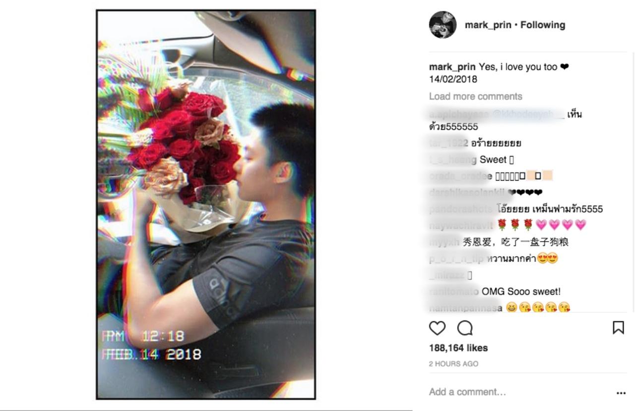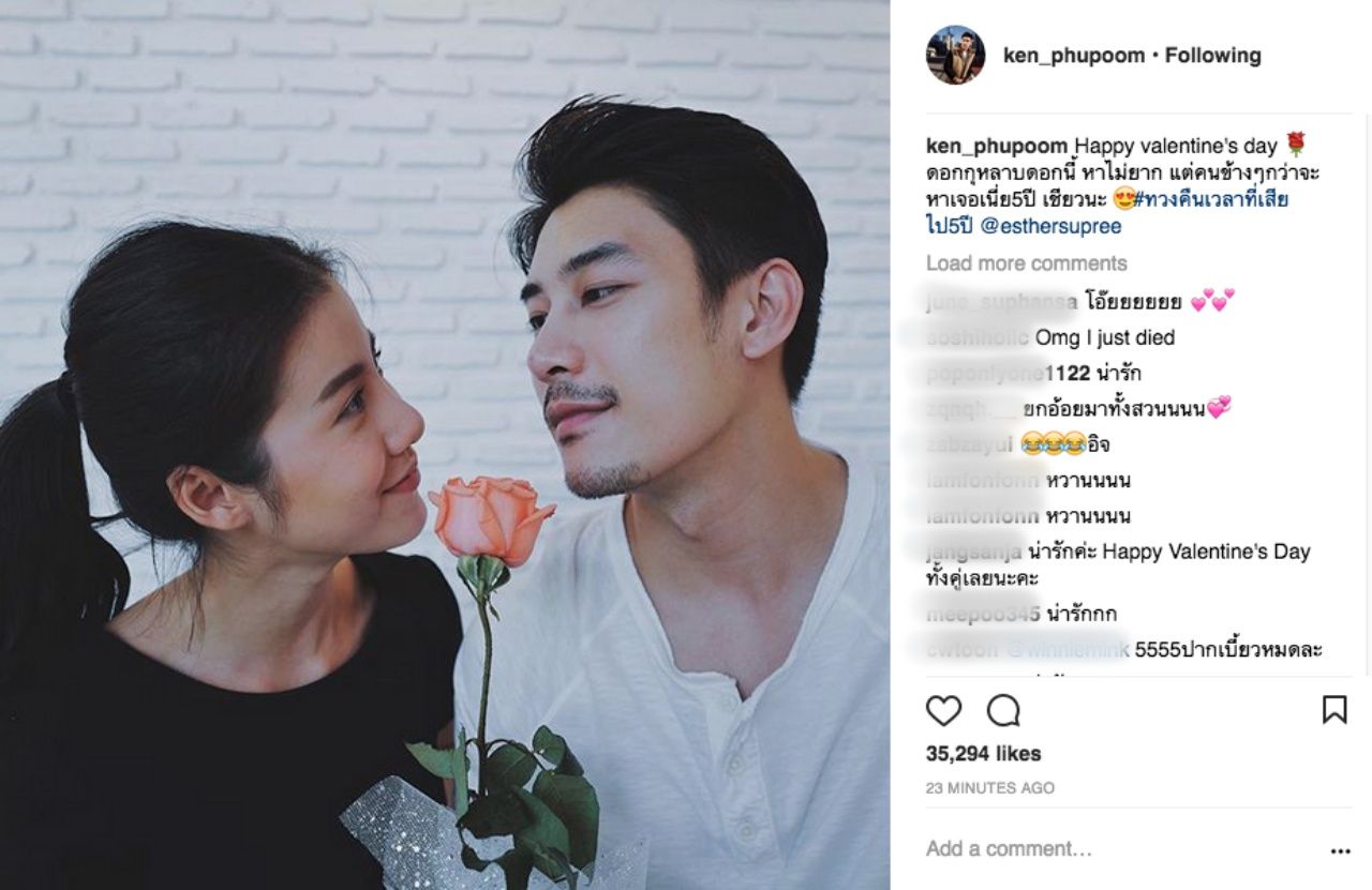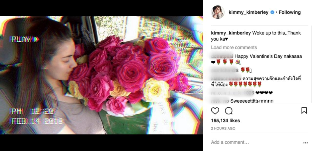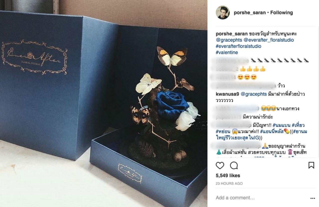 เคน ภูภูมิ และ เอสเธอร์ ก็ไม่น้อยหน้า แม้จะให้ดอกไม้แค่ดอกเดียว แต่แคปชั่นของหนุ่มเคนหวานมดกัดสุดๆ สาว แพทริเซีย และ หนุ่มพีช ก็มีของขวัญให้กันและกัน หวานไม่แพ้คู่อื่นๆ ด้านพระเอกหนุ่ม พอร์ช ศรัณย์ และแฟนสาว เกรซ มีมอบดอกไม้ให้กันตามธรรมเนียม หวานจนน่าอิจฉา