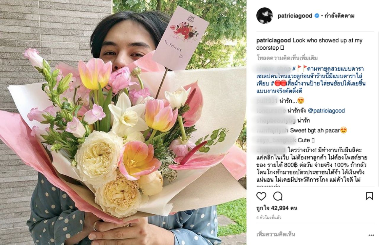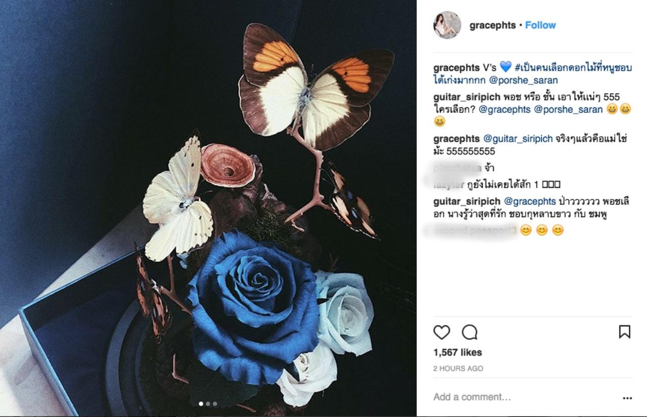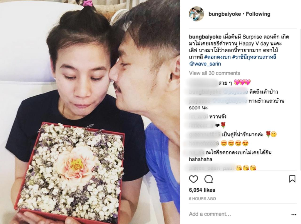 เคน ภูภูมิ และ เอสเธอร์ ก็ไม่น้อยหน้า แม้จะให้ดอกไม้แค่ดอกเดียว แต่แคปชั่นของหนุ่มเคนหวานมดกัดสุดๆ สาว แพทริเซีย และ หนุ่มพีช ก็มีของขวัญให้กันและกัน หวานไม่แพ้คู่อื่นๆ ด้านพระเอกหนุ่ม พอร์ช ศรัณย์ และแฟนสาว เกรซ มีมอบดอกไม้ให้กันตามธรรมเนียม หวานจนน่าอิจฉา