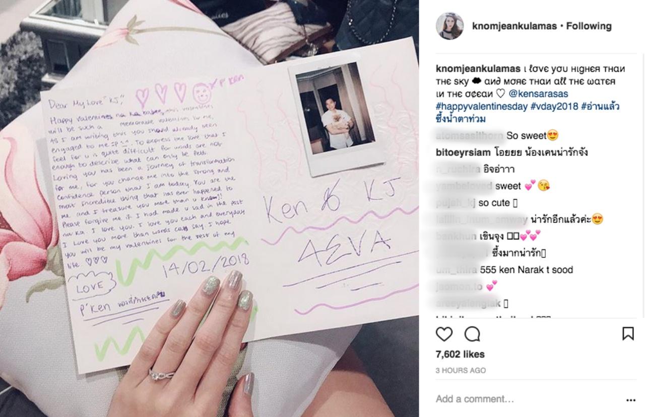 ว่าที่เจ้าสาวคนต่อไปอย่าง ขนมจีน กุลมาศ ก็ได้รับการ์ดในวันวาเลนไทน์ ที่หวานใจไฮโซเคน เขียนคำบรรยายสุดซึ้งให้ในการ์ด ทำเอาสาวขนมจีนบ่อน้ำตาแตกเลยทีเดียว ทางด้านสาว มด ณปภัสร ก็หวานไม่แพ้ใคร หลังจากที่แฟนหนุ่มกัปตันสุดหล่อ ทำของขวัญสุดเซอร์ไพรส์มาส่งให้สาวมดถึงที่ ทำเอาเจ้าตัวต้องโพสต์อวดในความน่ารักของแฟนหนุ่มซะหน่อย