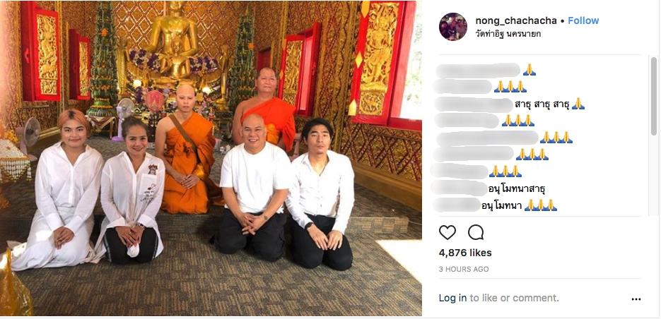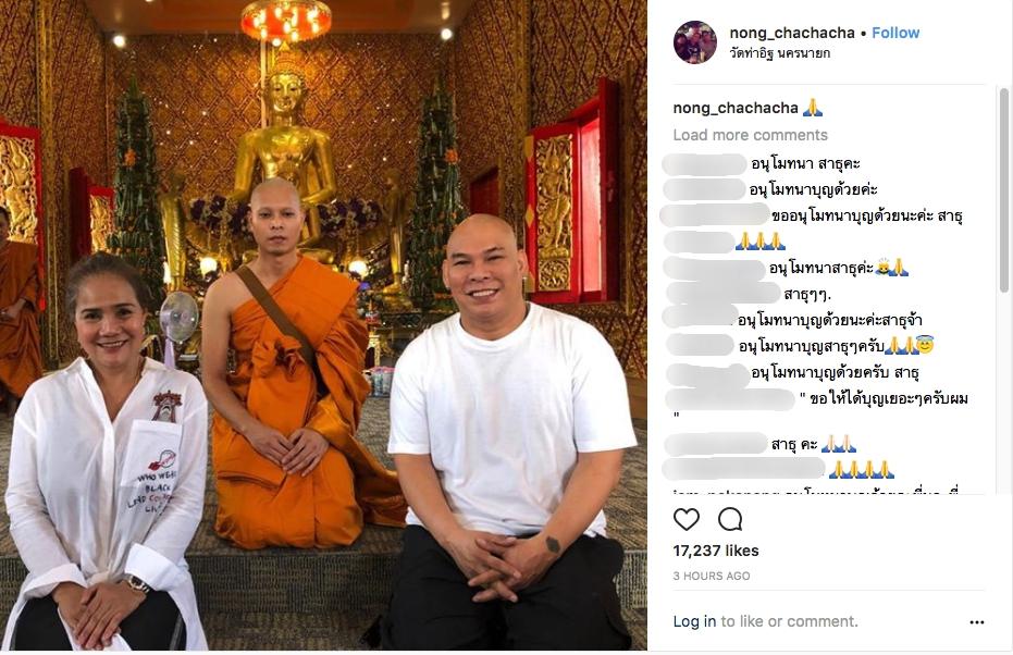 ซึ่ง โหน่ง ได้โพสต์ภาพบรรยากาศงานบวชของ พระเดียร์ หลายภาพ โดยมีแฟนๆ เข้ามาร่วมอนุโมทนาบุญผ่านไอจีด้วย นอกจากนี้ยังมีเพื่อนในวงการบันเทิงอย่างตลกหนุ่ม แจ๊ค เชิญยิ้ม และนักแสดงสาวเซ็กซี่ หญิง อภิสรา รักชาติ แฟนสาวของแจ๊ค มาร่วมพิธีดังกล่าวและได้โพสต์ภาพคู่กับโหน่ง ชะชะช่า ในไอจีด้วย.