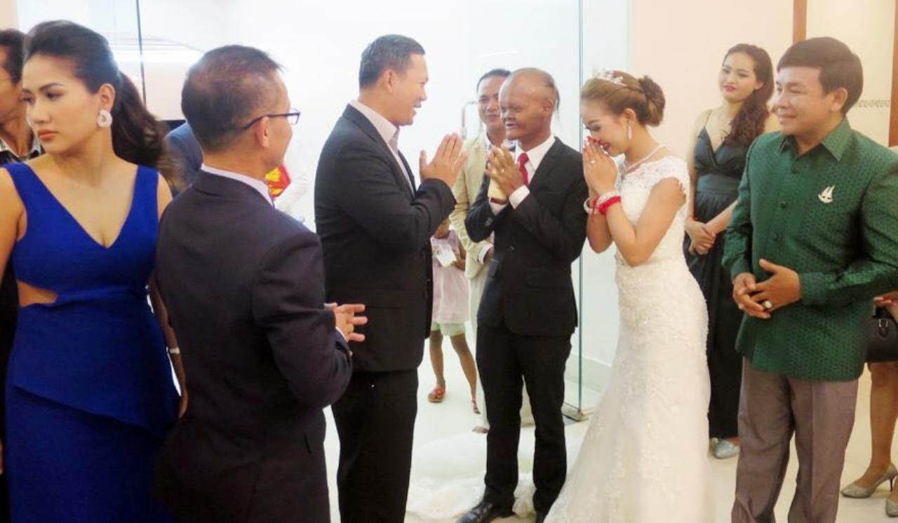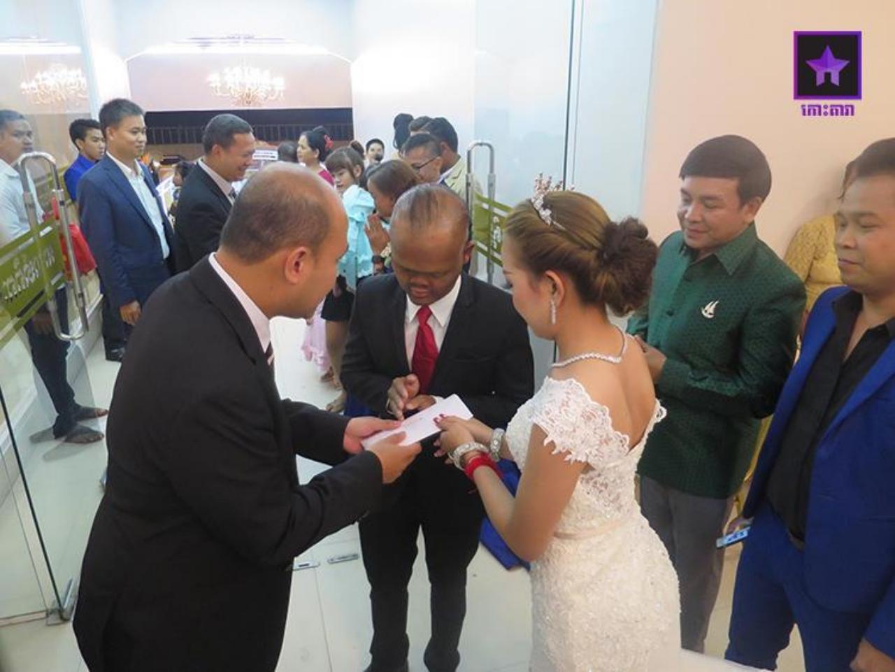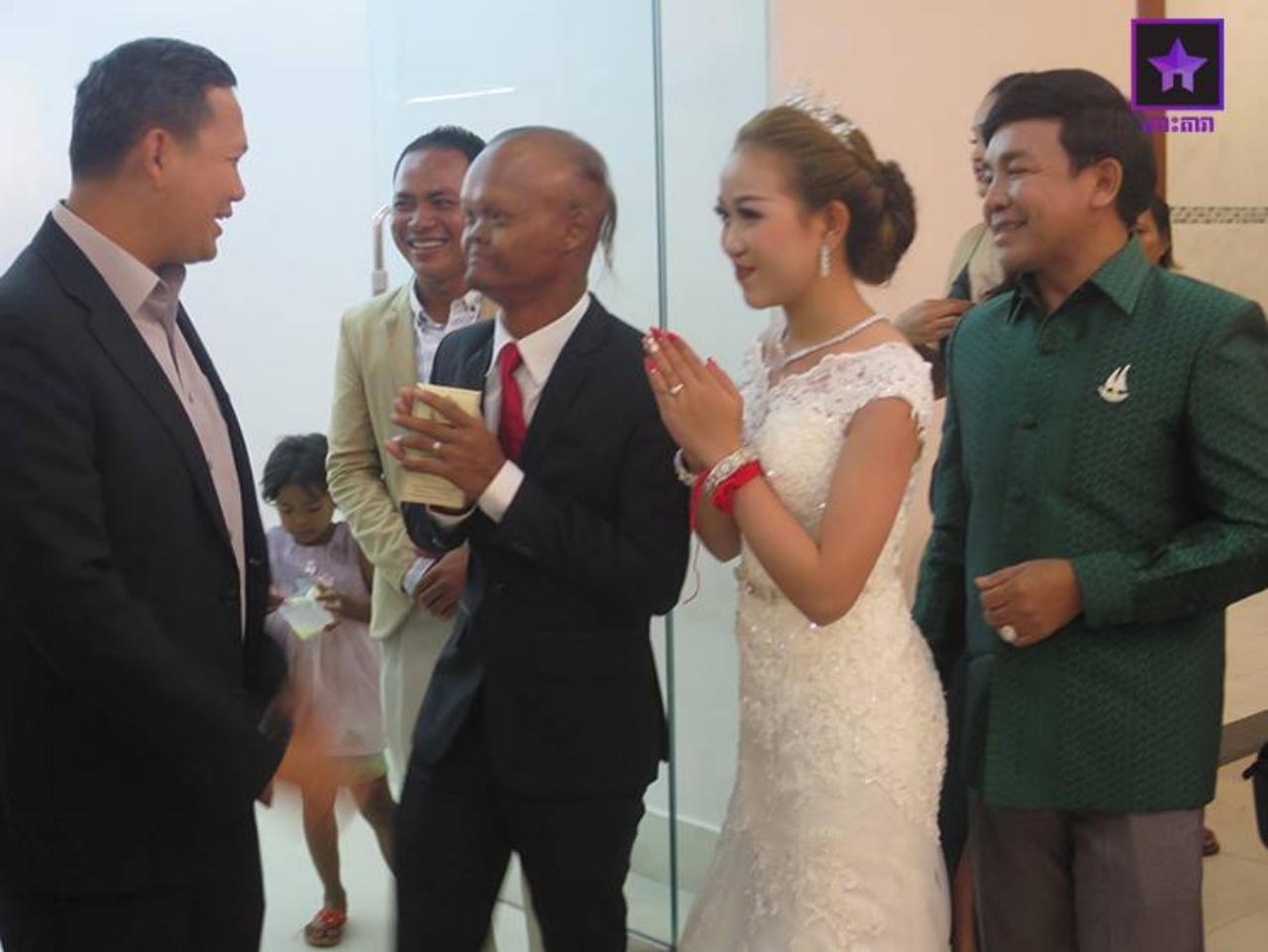 แต่งานนี้เห็นเป็นที่ฮือฮากันมากที่สุดของงานนี้ก็คือ สมเด็จฯ ฮุน เซน นายกรัฐมนตรีของกัมพูชา ก็ได้มีการร่วมยินดีกับตลกหนุ่มคนนี้ด้วย โดยมีการส่ง นายฮุน มาเนต ลูกชายคนโตมาเป็นตัวแทนร่วมแสดงความยินดี พร้อมกับมอบเงินใส่ซองเป็นจำนวนเงินถึง 10,000 ดอลลาร์ ประมาณ 40,000,000 รีลกัมพูชา หรือประมาณ 310,000 บาทนั่นเอง ทำเอาเจ้าบ่าวป้ายแดงอย่าง จ่อย ถึงกับน้ำตาคลอกลางงานแต่งด้วยความปลื้มใจเลยทีเดียว.