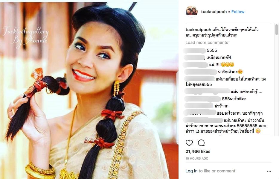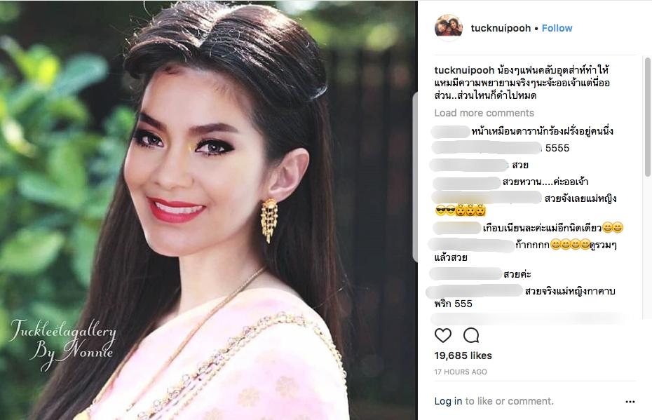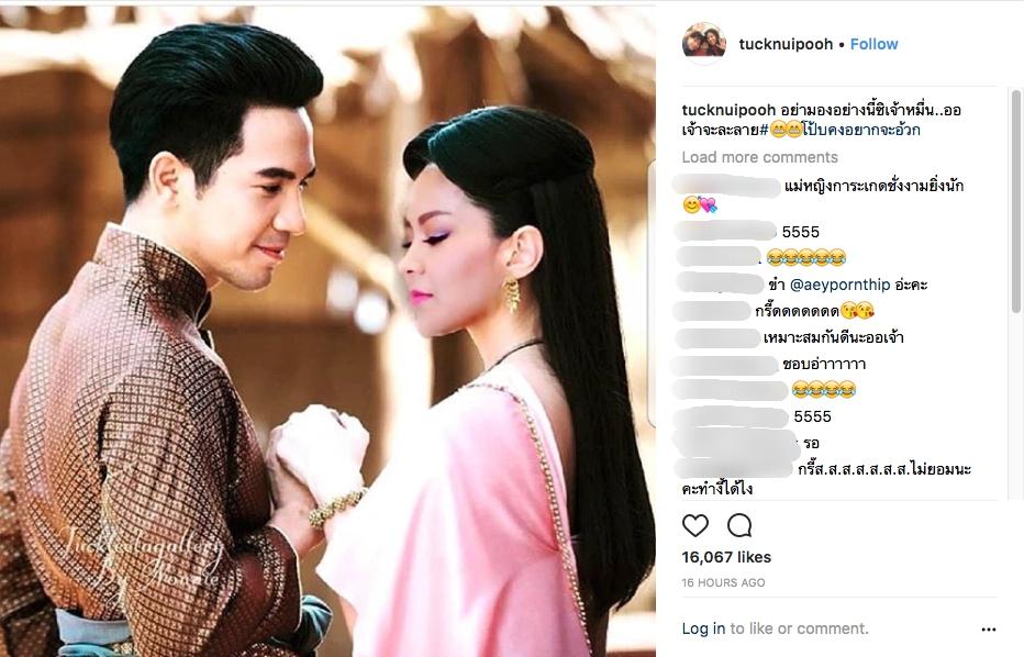 โดยนักร้องนักแสดงตลกสาว ตั๊ก ศิริพร อยู่ยอด ได้โพสต์ภาพตัดต่อหน้าตัวเองเป็น “แม่หญิงการะเกด” ที่นำแสดงโดยนางเอกสาว เบลล่า ราณี แคมเปน และเขียนข้อความว่า “น้องๆ แฟนคลับอุตส่าห์ทำให้ แหม มีความพยายามจริงๆ นะจ้ะออเจ้า แต่นี่ออส่วน..ส่วนไหนก็ดำไปหมด” นอกจากนี้ยังโพสต์ภาพตัดต่อตัวเองคู่กับ “หมื่นสุนทรเทวา” ที่นำแสดงโดยพระเอกหนุ่มขวัญใจสาวๆ โป๊ป ธนวรรธน์ วรรธนะภูติ และเขียนข้อความว่า “อย่ามองอย่างนี้ซิเจ้าหมื่น..ออเจ้าจะละลาย #โป๊ปคงอยากจะอ้วก”