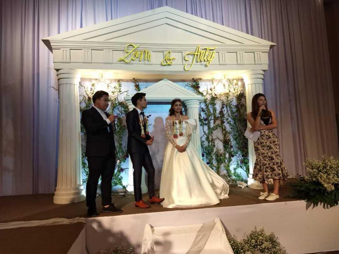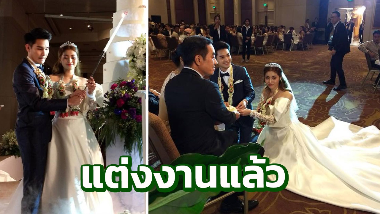 ทั้งสองเพิ่งควงเข้างานวิวาห์แสนสุขไปเมื่อค่ำวันนี้ เมื่อเวลาประมาณ 18.30 ที่ห้องแกรนด์บอลรูม ชั้น 4 โรงแรมมิราเคิลแกรนด์กรุงเทพ โดยมี ดร.ภาณุพงศ์ ทิพยเศวต นายกเทศมนตรีเมืองสระบุรี มาเป็นประธานงานแต่งครั้งนี้ เป็นการเลี้ยงแบบโต๊ะจีนอิ่มอร่อยกันไปแล้ว งานจัดได้เรียบง่ายอบอุ่นเป็นกันเอง ญาติผู้ใหญ่และเพื่อนๆ ของทั้งสองฝ่าย ต่างมาร่วมงานกันอย่างมีความสุข อวยพรให้ทั้งสองครองรักไปนานๆ.