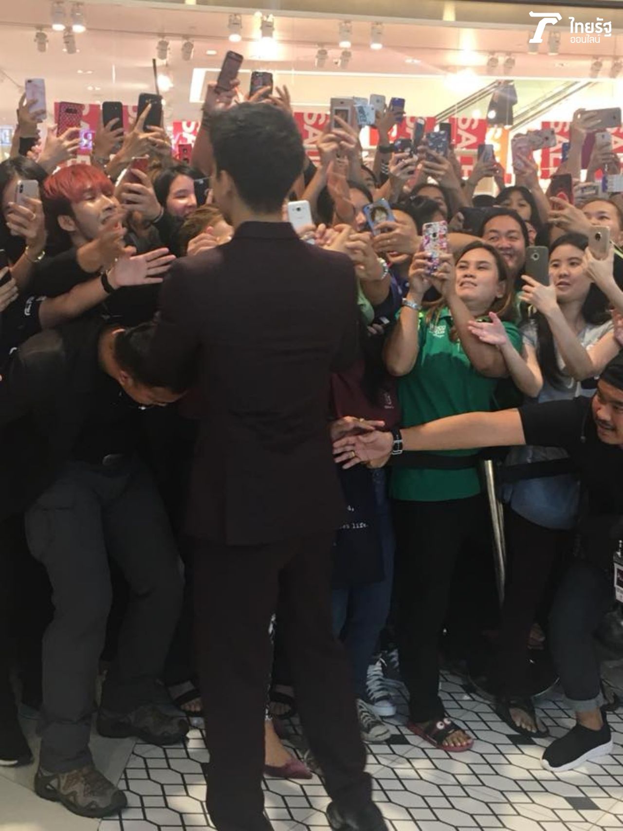 ก่อนและหลังงานเริ่ม โป๊ปทำหน้าที่พระเอกขวัญใจได้ค่อนข้างโอเคเลยนะ มีการเดินไปแจกยิ้มหวานๆ จับมือทักทายอย่างอบอุ่น ยอมให้เซลฟี่ถ่ายรูปด้วยนิดหน่อย ไม่เกินคาดมีแฟนคลับแห่ทะลักเบียดๆ จนเกือบจะเป็นจลาจล ยังดีบอดี้การ์ดเตรียมพร้อมรับมือมาดี คอยตะโกนบ้าง คอยตะล่อมๆ บ้าง ควบคุมฝูงชนได้ดีประมาณหนึ่ง จึงทำให้สถานการณ์ที่ดูเหมือนจะแย่! กลายเป็นโอเคอยู่.