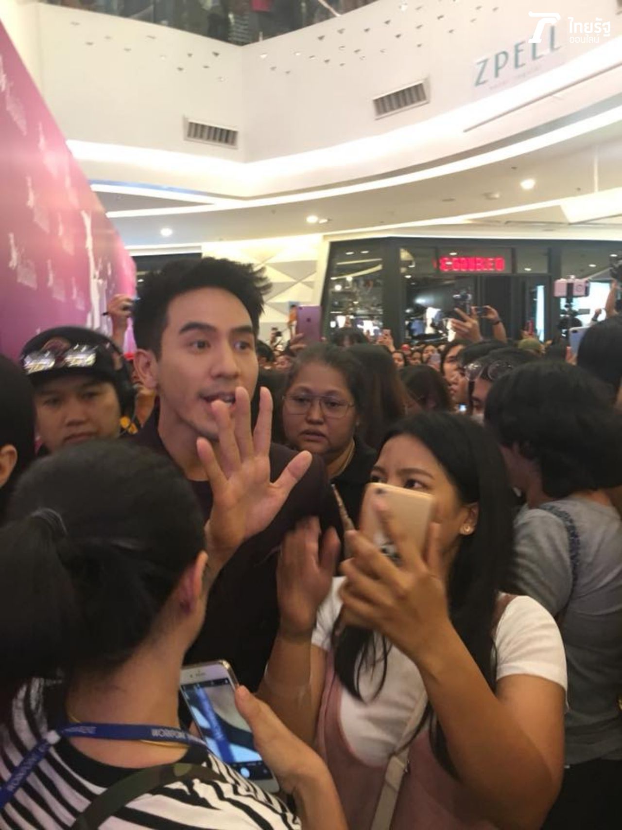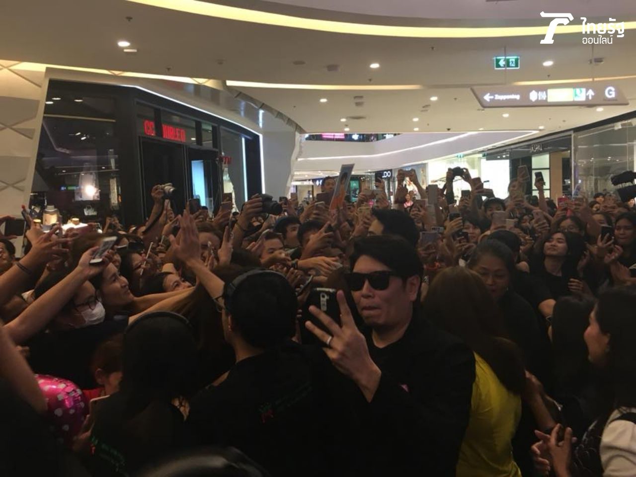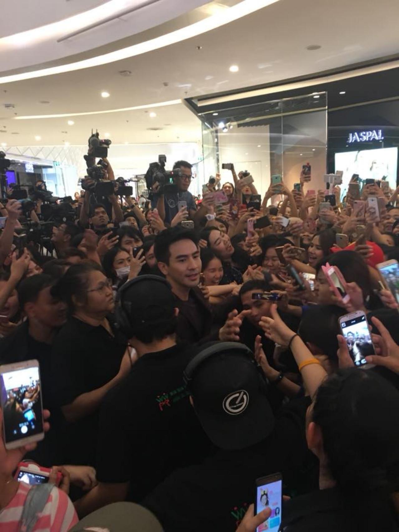 งานนี้แฟนคลับพี่หมื่นมากันเพียบ!!! แน่นขนัดทุกชั้น เห็นแล้วขนลุกแทนจริงๆ บางส่วนมารอจองที่ใกล้ๆ เวทีจัดงานที่ชั้น 1 ตั้งแต่ 11 โมงเช้า ซึ่งงานกว่าจะเริ่ม ก็ปาไปเย็นแล้วกว่า 17.00 น. แต่แฟนคลับก็ไม่ยอมหนีไปไหน ตรงกันข้ามยิ่งใกล้งานเริ่ม แฟนคลับก็ยิ่งแห่กันมาอย่างเนืองแน่น ทุกชั้นของห้างแทบแตก ตอนแรกๆ นึกว่าบอยแบนด์ชื่อดังจากเกาหลีจะมางาน แต่จริงๆ มหาชนตั้งใจมาตั้งหน้าตั้งตารอโป๊ปโดยเฉพาะนั่นเอง