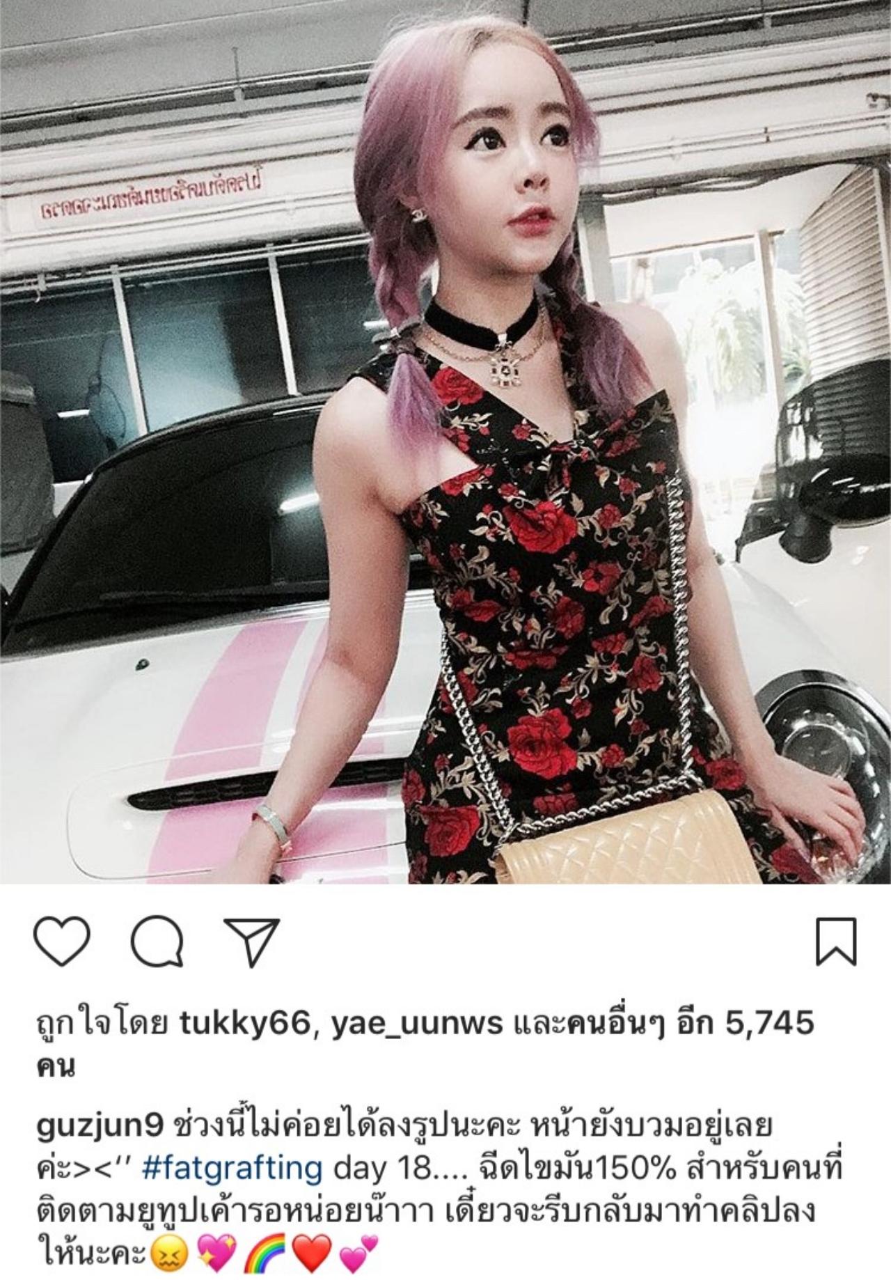 สาวกัสจังก็ได้รีวิวหน้าใหม่หลังจากที่ฉีดไขมันมา แม้หน้าจะยังบวมแต่สาวกัสจังก็ยังถ่ายรูปมาให้แฟนๆ ได้ดูกัน อวดความแบ๊วของหน้าใหม่ ที่แฟนๆ หลายคนบอกว่าเหมือนตุ๊กตามากๆ โดยเจ้าตัวบอกว่าหากครบ 1 เดือนแล้วหน้าจะเข้าที่มากกว่านี้ และจะอัพเดตให้แฟนๆ เห็นอีกครั้งนึง.