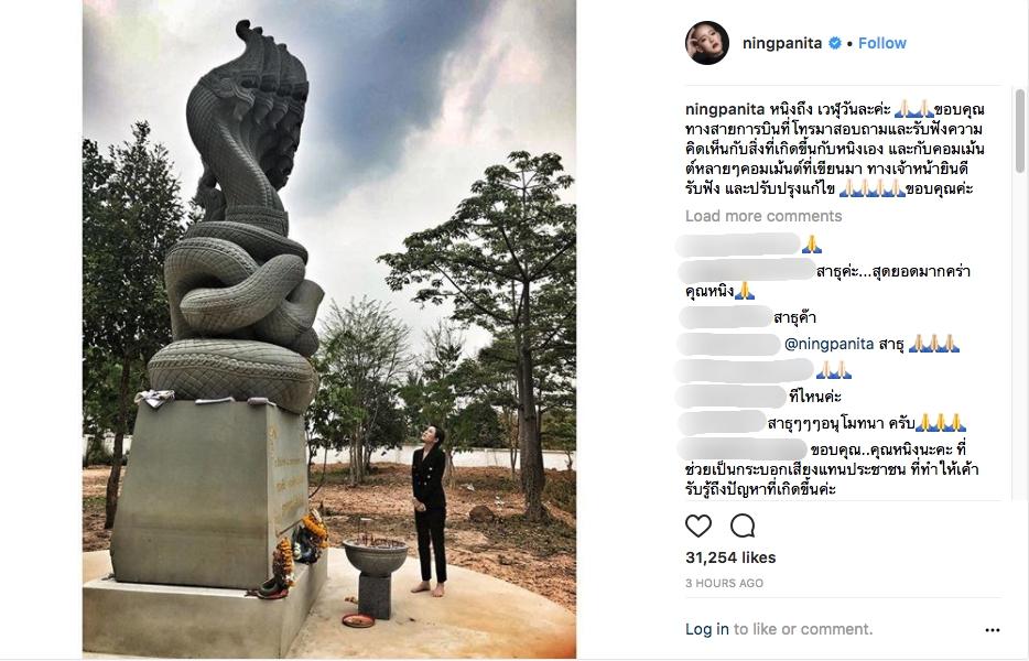 ซึ่งหลังจากที่หนิงได้โพสต์ข้อความดังกล่าวก็มีคนที่เคยเจอเหตุการณ์คล้ายๆ กันเข้ามาแสดงความคิดเห็นเป็นจำนวนมาก ล่าสุดหนิงได้โพสต์ภาพตัวเองและเขียนข้อความว่า "หนิงถึงเวฬุวันละค่ะ ขอบคุณทางสายการบินที่โทรมาสอบถามและรับฟังความคิดเห็นกับสิ่งที่เกิดขึ้นกับหนิงเอง และกับคอมเม้นต์หลายๆคอมเม้นต์ที่เขียนมา ทางเจ้าหน้ายินดีรับฟัง และปรับปรุงแก้ไข ขอบคุณค่ะ".