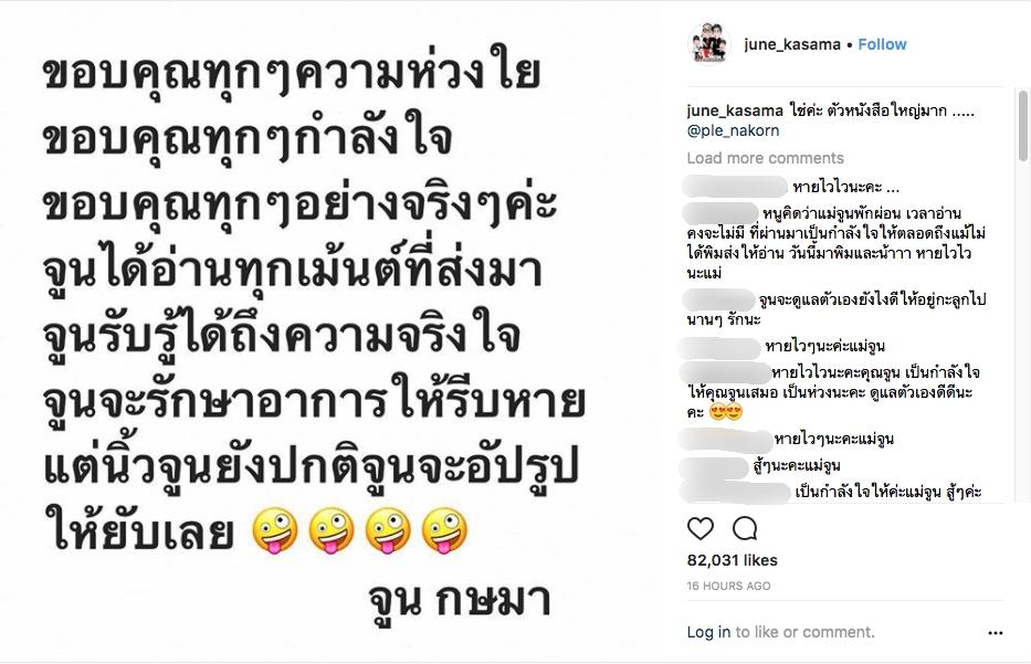 “บันเทิงไทยรัฐออนไลน์” ก็ขอให้คุณแม่จูนหายป่วยไวๆ ด้วยนะจ๊ะ.