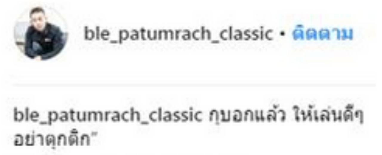 โดยมีข้อความเป็นบทสนทนาของทั้งคู่ ซึ่งหนุ่มเบิ้ลถามเก้าว่า "เหลืองหรือแดง" และหนุ่มเก้าได้ตอบกลับว่า "เหลือง 5555555" พร้อมแคปชั่นว่าใต้รูปว่า "กุบอกแล้ว ให้เล่นดีๆ อย่าตุกติก" แต่หลังจากที่มีกระแสข่าวดังกล่าวหนุ่มเบิ้ลก็ได้ตัดสินใจลบรูปดังกล่าวออกจากอินสตาแกรมของตัวเองแล้ว