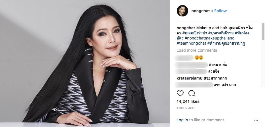 นอกจากนี้ น้องฉัตร ยังเล่าถึงการทำงานกับนักแสดงสาวผ่านทางไอจีว่า "Makeup and hair" อีกลุคของคุณหญิงจำปา ใส่ผ้าไทยออกสู่สากล "ก่อนอื่นต้องบอกก่อนว่าเกร็งมากๆ ที่ได้แต่งหน้าแปลงโฉมให้พี่เหมียว ชไมพร หรือ คุณหญิงจำปา ในละคร บุพเพสันนิวาส ที่ดังเป็นกระแสมากกเปรี้ยงปร้างมากๆๆ แต่พี่เหมียวน่ารักสุดๆ เป็นกันเอง คลายความเกร็งเราไปได้เยอะเลย และพี่เหมียวยังบอกว่า "นี่งานแรกเลยนะที่พี่ยอมมาถ่าย" เราก็ยิ่งปลื้มไปกันใหญ่ และก็ตั้งใจอยากให้ออกมาสวยให้ถูกใจทุกคนครับ น้องฉัตรขอขอบคุณโอกาสดีๆ ขอบคุณทีม ขอบคุณรูปสวยๆ by @ricky_photo หมวกสวยๆ @jhom.redcarpet และผ้าไทยสวยๆ”.