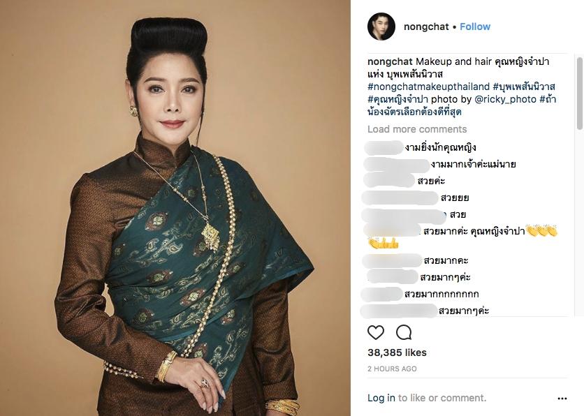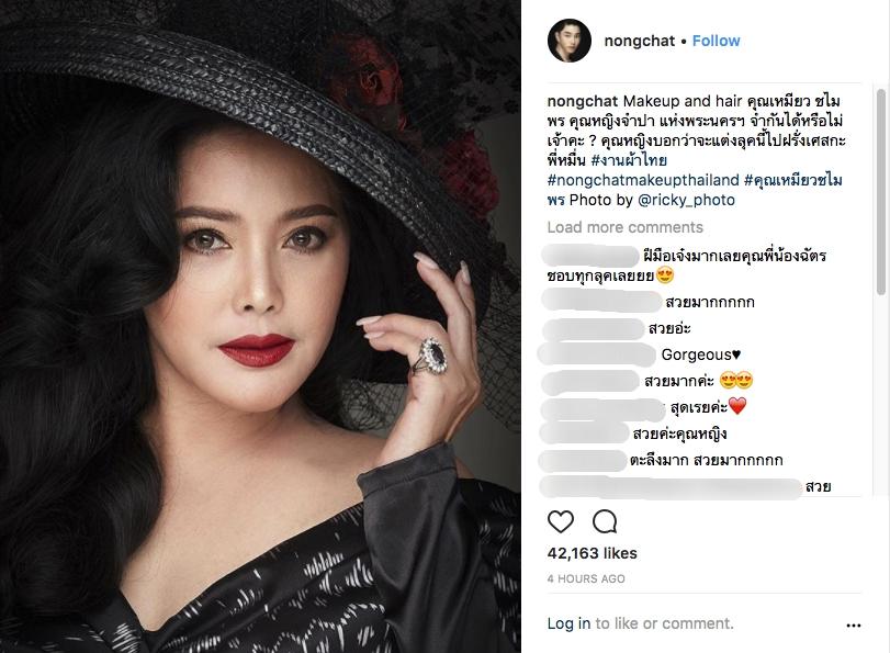 โดยในไอจีส่วนตัวของ น้องฉัตร ได้โพสต์ภาพของ เหมียว ชไมพร ไว้หลายภาพ พร้อมด้วยแคปชั่น “Makeup and hair คุณเหมียว ชไมพร คุณหญิงจำปา แห่งพระนครฯ จำกันได้หรือไม่เจ้าคะ? คุณหญิงบอกว่าจะแต่งลุคนี้ไปฝรั่งเศสกะพี่หมื่น #งานผ้าไทย#nongchatmakeupthailand #คุณเหมียวชไมพร Photo by @ricky_photo”