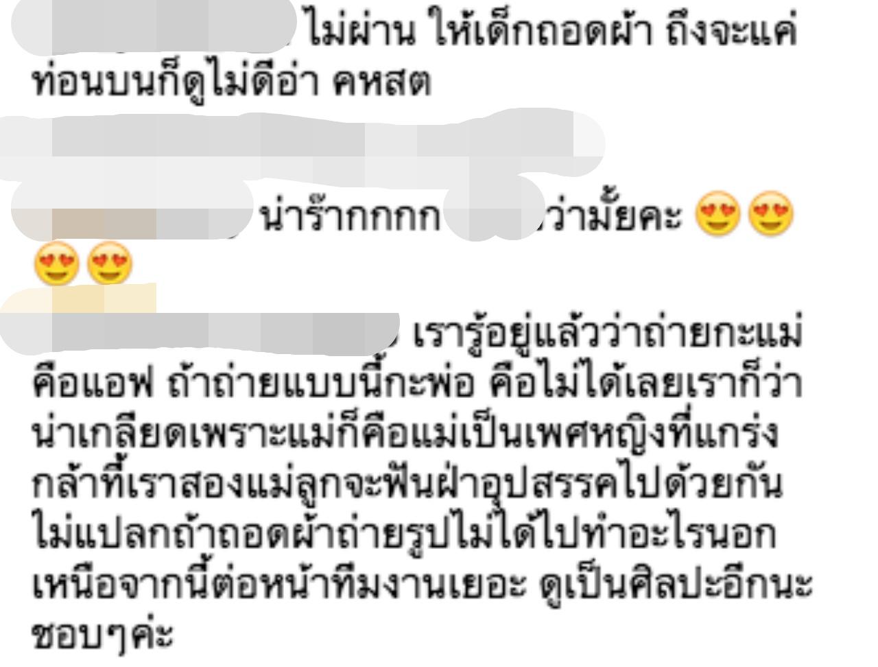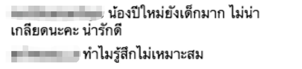 แต่ขณะเดียวกัน มีภาพทีมงานที่โพสต์ไอจีเป็นรูปที่น้องปีใหม่ ถอดเสื้อเปลือยท่อนบนนอนคว่ำถ่ายกับคุณแม่แอฟ ซึ่งก็มีชาวเน็ตมาตั้งคำถามวิพากษ์วิจารณ์ว่าไม่เหมาะที่เอาเด็กผู้หญิงมาถอดเสื้อโพสต์ท่าแบบนี้ แต่ก็มีอีกฝ่ายที่บอกว่าเป็นภาพน่ารักๆ สายสัมพันธ์แม่ลูกไม่ต้องคิดมาก ถ้าถ่ายกับพ่อถึงจะน่าเกลียด.