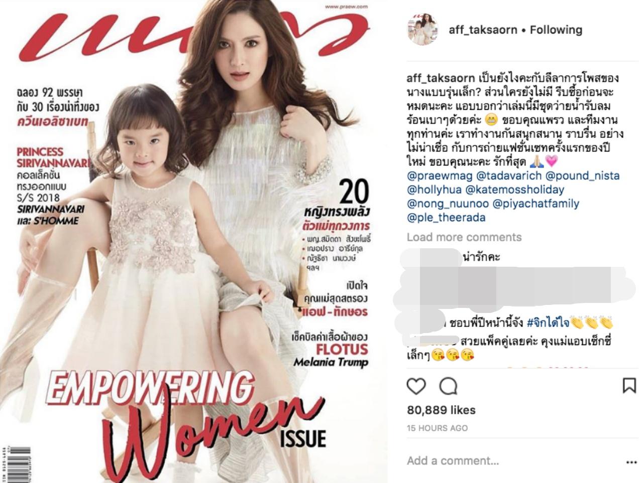 เป็นเรื่องอีกแล้ว! เมื่อมีดราม่ารูปน้องปีใหม่ ถอดเสื้อถ่ายแฟชั่นกับ คุณแม่แอฟ ทักษอร ให้กับนิตยสารดัง โดยเป็นเซตแฟชั่นน่ารักของแม่ลูก ซึ่ง แอฟ ทักษอร ก็ขึ้นภาพการถ่ายแฟชั่นพร้อมแคปชั่น “เอาภาพเบื้องหลังของเราแม่-ลูกกับการถ่ายปก “แพรว” แมกกาซีน มาให้ดูกันก่อนวางแผงพรุ่งนี้ค่ะ! ฝากทุกคนด้วยนะคะ”
