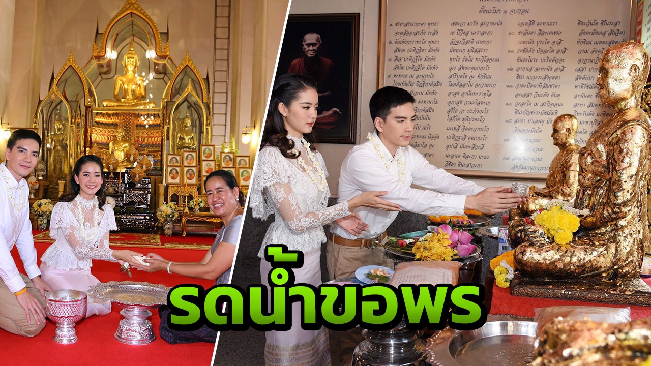 เมื่อมากันพร้อมหน้าพร้อมตา นิว-โบว์ ไปกราบนมัสการ พระครูสมุห์วัชระ เพื่อสนทนาธรรม และขอคำแนะนำในการทำบุญ เริ่มต้นด้วยการกราบพระที่วิหารใหญ่ ถวายผ้าไตร จีวร ก่อนจะออกมาไหว้พระที่วิหารด้านนอก ปิดทองคำเปลวพระพุทธรูป สรงน้ำพระขอพร ตีระฆังเอาฤกษ์เอาชัย จากนั้นก็ไปปล่อยปลา ให้อาหารปลาและนก นิว เป็นห่วงกลัว โบว์ จะหิวเลยป้อนขนมปังให้น้องนุ่งเสียเลย โบว์ ก็อ้าปากงับ เล่นเอาคนรอบข้างอมยิ้มไปตามๆกันกับความขี้เล่นของพี่ชายกับน้องสาว ปิดท้ายกิจกรรมดีๆ งานนี้ โบว์ ยังถือโอกาสนำพวงมาลัยมาขอขมาคุณแม่ และรดน้ำดำหัวอวยพรให้สุขภาพดี โดยมี นิว ร่วมรดน้ำดำหัวคุณแม่ของโบว์เช่นเดียวกัน