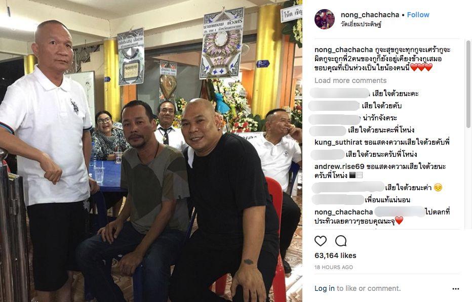 นอกจากนี้ โหน่ง ชะชะช่า ยังได้โพสต์คลิปบรรยากาศในงานศพและเขียนข้อความว่า “ขอกราบขอบคุณทุกๆ ท่านด้วยนะครับ” อีกทั้งยังได้โพสต์ภาพคู่กับ หม่ำ จ๊กมก และ เท่ง เถิดเทิง พร้อมทั้งเขียนข้อความว่า “กูจะสุขกูจะทุกข์กูจะเศร้ากูจะผิดกูจะถูกพี่ 2 คนของกูก็ยังอยู่เคียงข้างกูเสมอขอบคุณที่เป็นห่วงเป็นใยน้องคนนี้” โดยมีแฟนๆ เข้ามาแสดงความเสียใจและบอกว่าซึ้งกับมิตรภาพของตลกดังทั้งสามคน