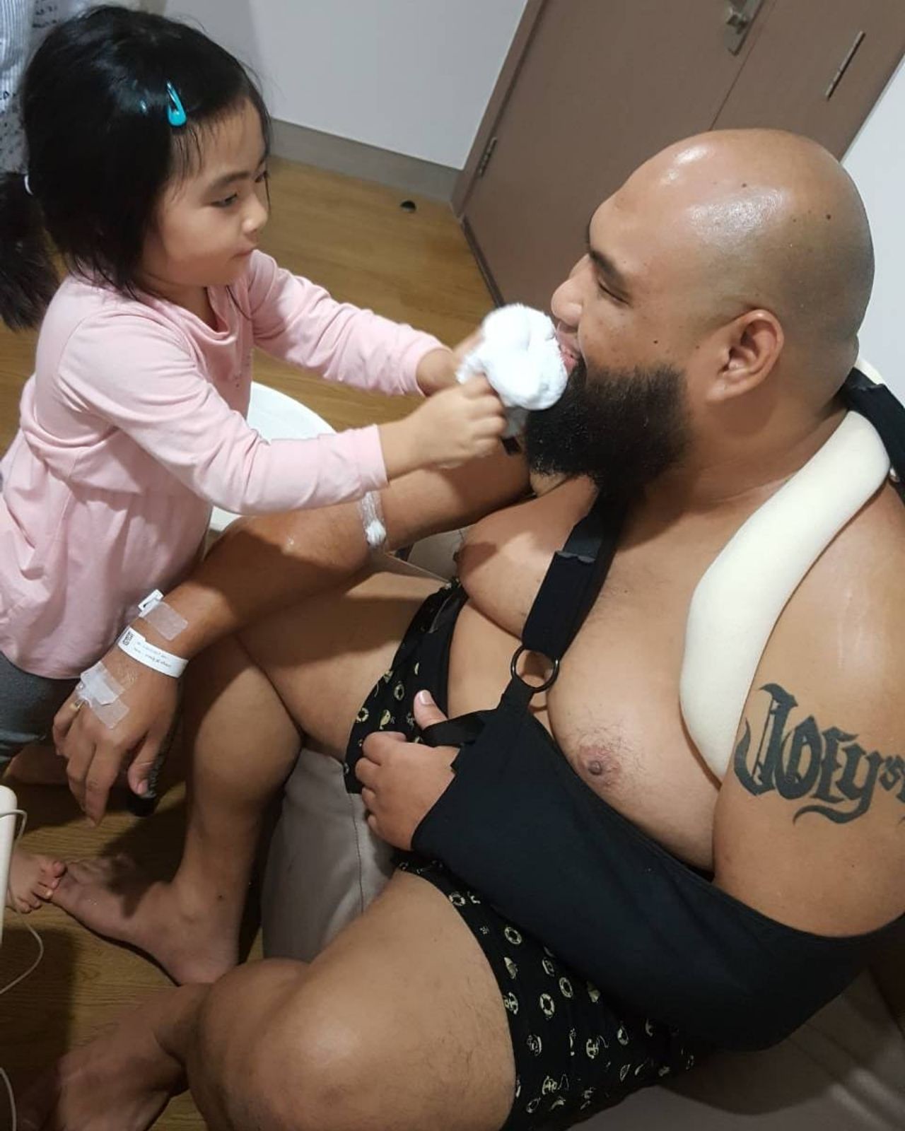 จากนั้นต่อมา กอล์ฟ ก็ได้โพสต์ภาพคู่กับลูกสาว น้องชูใจ ที่กำลังเช็ดหน้าให้ป่ะป๊า หลายคนที่เห็นภาพนี้แล้ว ต่างเข้ามาคอมเมนต์ให้กำลังใจและบอกว่า ได้กำลังใจดีแบบนี้ หายเร็วแน่นอน.