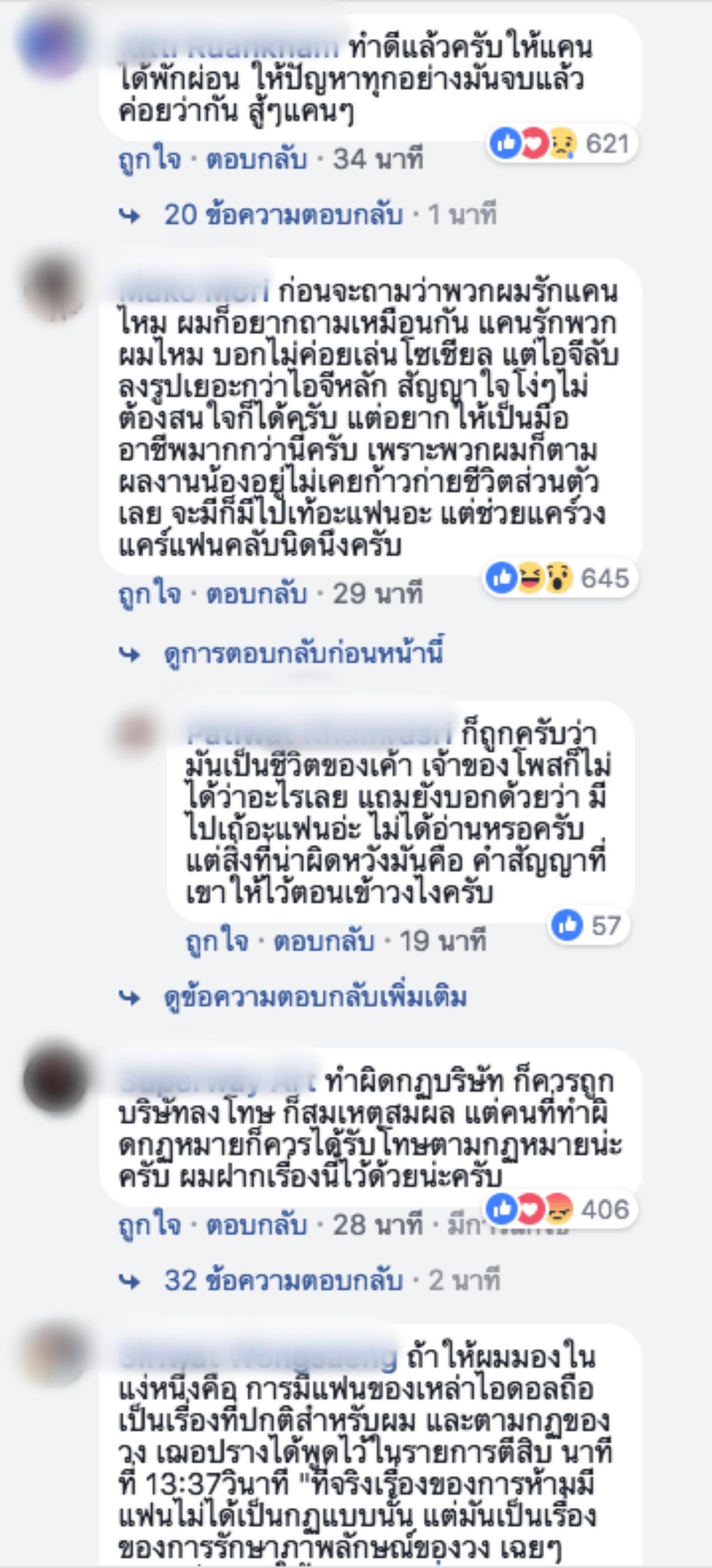 และแฟนคลับต่างก็เข้ามาแสดงความคิดเห็นกันเป็นจำนวนมาก บ้างก็บอกว่าดีเหมือนกัน น้องจะได้พักผ่อน บ้างก็ตัดพ้อในทำนองที่ว่า แฟนคลับทุกคนต่างก็รักแคน แต่แคนรักแฟนคลับบ้างมั้ย บอกไม่ค่อยเล่นโซเชียล แต่ไอจีลับ ลงรูปเยอะกว่าไอจีหลัก สัญญาใจโง่ๆ ไม่ต้องสนใจก็ได้ แต่อยากให้เป็นมืออาชีพมากกว่านี้.