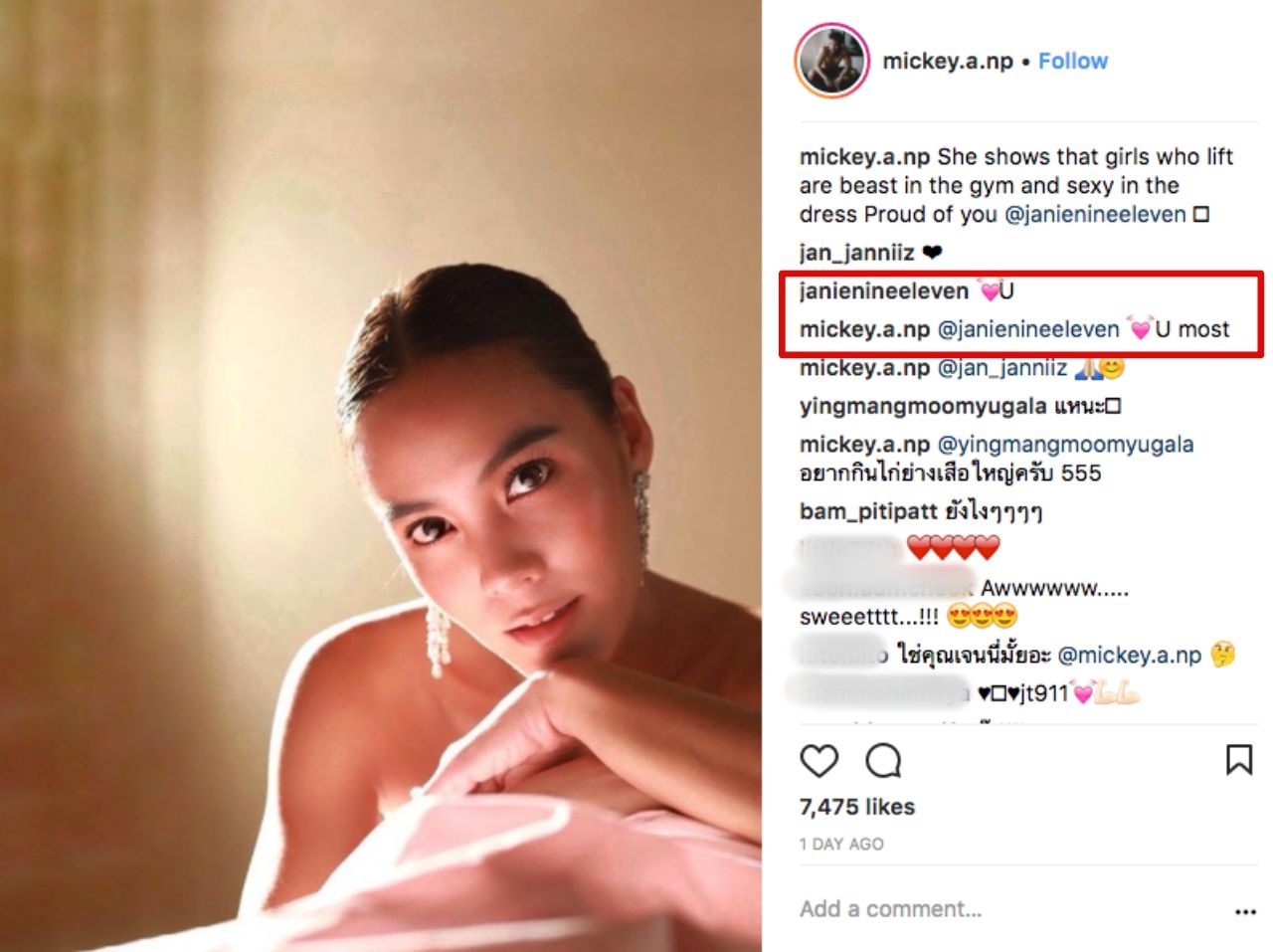 แต่ล่าสุดในอินสตาแกรมของหนุ่มมิกกี้ ก็ได้โพสต์รูปสาวเจนี่หลังจากที่ไปร่วมงานหนังเมืองคานส์ ที่ฝรั่งเศส เจ้าตัวก็ได้เขียนแคปชั่นสุดหวาน พร้อมกับแท็กหาสาวเจนี่ โดยบอกว่า "She shows that girls who lift are beast in the gym and sexy in the dress Proud of you @janienineeleven" ซึ่งมีความหมายโดยนัยว่า "เธอแสดงให้เห็นว่าผู้หญิงที่ฟิตเฟิร์มจนมีกล้ามในยิม ก็เซ็กซี่ในชุดเดรสได้ รู้สึกภูมิใจในตัวคุณ"