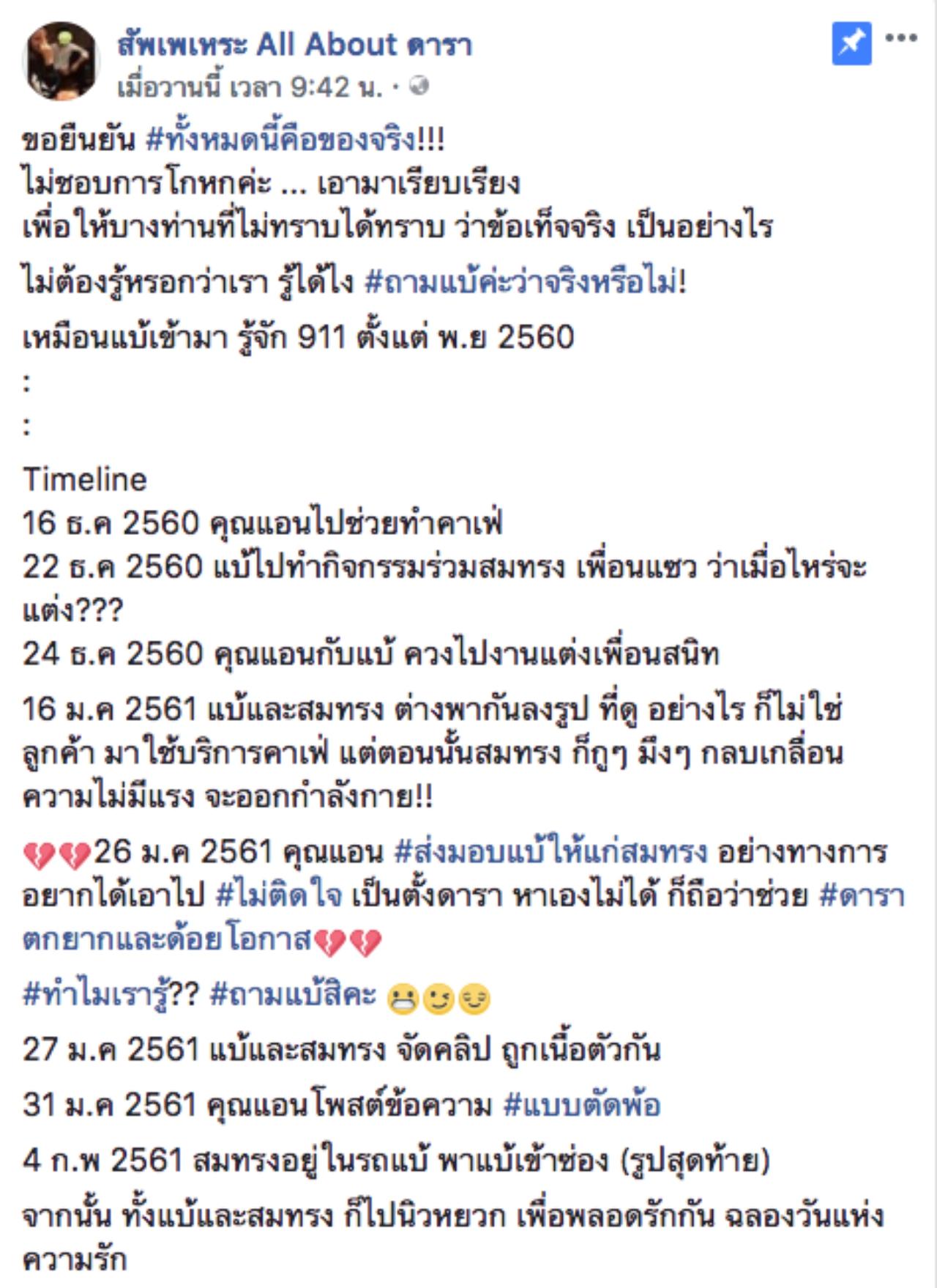 ล่าสุดมีเพจแอนตี้สาวเจนี่ผุดขึ้นมาอีกแล้ว ในเพจนั้นได้เขียนไทม์ไลน์แฉนางเอกคนดังในลักษณะที่ไปแย่งแฟนคนอื่น และยืนยันว่าเรื่องทั้งหมดที่เขียนนั้นเป็นเรื่องจริง