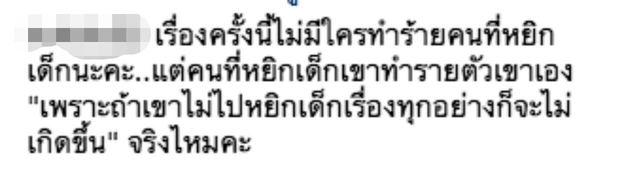 และหลายคนก็อยู่ทีมแม่ เพราะมองว่าไม่มีใครมีสิทธิ์มาหยิกลูกคนอื่น "เรื่องครั้งนี้ไม่มีใครทำร้ายคนที่หยิกเด็กนะคะ..แต่คนที่หยิกเด็กเขาทำลายตัวเขาเอง "เพราะถ้าเขาไม่ไปหยิกเด็กเรื่องทุกอย่างก็จะไม่เกิดขึ้น" จริงไหมคะ,