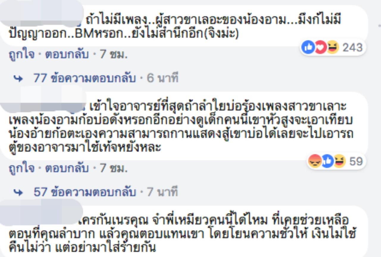 "เข้าใจอาจารย์ที่สุดถ้าลำไยบ่ร้องเพลงสาวขาเลาะเพลงน้องอามก็บ่ดังหรอกอีกอย่างดูเด็กคนนี้เขาหัวสูงจะเอาเทียบน้องอ้ายก้อตะเองความสามารถการแสดงสู้เขาบ่ได้เลยจะไปเอารถตู้ของอาจารย์มาใช้เท็จหยังละ"
