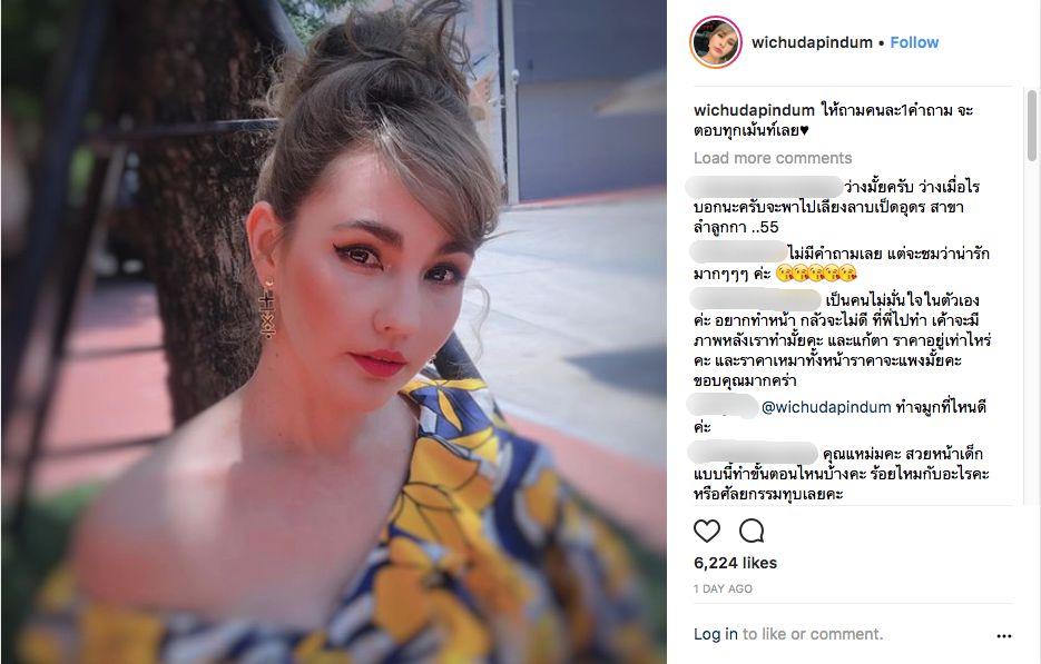ล่าสุดเจ้าตัวได้โพสต์ภาพตัวเองหลังจากหน้าเริ่มเข้าที่เข้าทางแล้ว แถมยังใจดีให้แฟนๆ ถามเธอได้คนละ 1 คำถาม และส่วนมากแฟนๆ จะเข้ามาชมเธอว่าเดี๋ยวนี้ดูสวยขึ้น บ้างก็ว่าปกติสวยอยู่แล้ว พร้อมทั้งถามว่าที่บินไปเกาหลีครั้งนี้ไปทำหน้าที่ไหนและราคาเท่าไหร่ งานนี้เจ้าตัวก็เลยตอบไปตรงๆ ว่าหมดไปราวๆ 5 แสนบาท อื้อหืม!! สวยและมีตังค์ที่แท้ทรูเลยจ้า!!